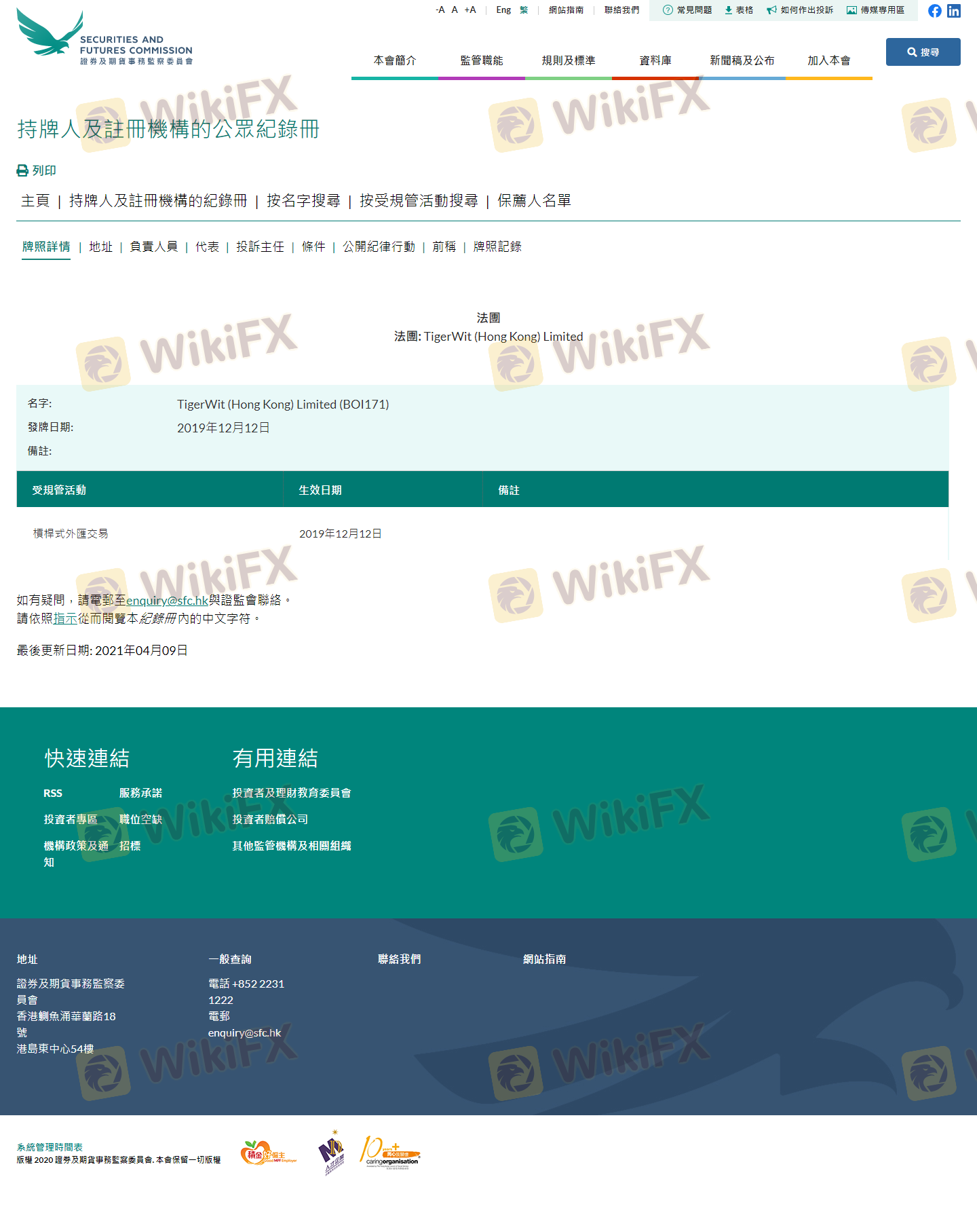 Mengenai legitimasi broker forex TigerWit, ia menyediakan Hong Kong SFC, Kerajaan Inggris FCA, Bahama SCB, dan (Kami juga melakukan investigasi lapangan terkait aspek keamanan.).