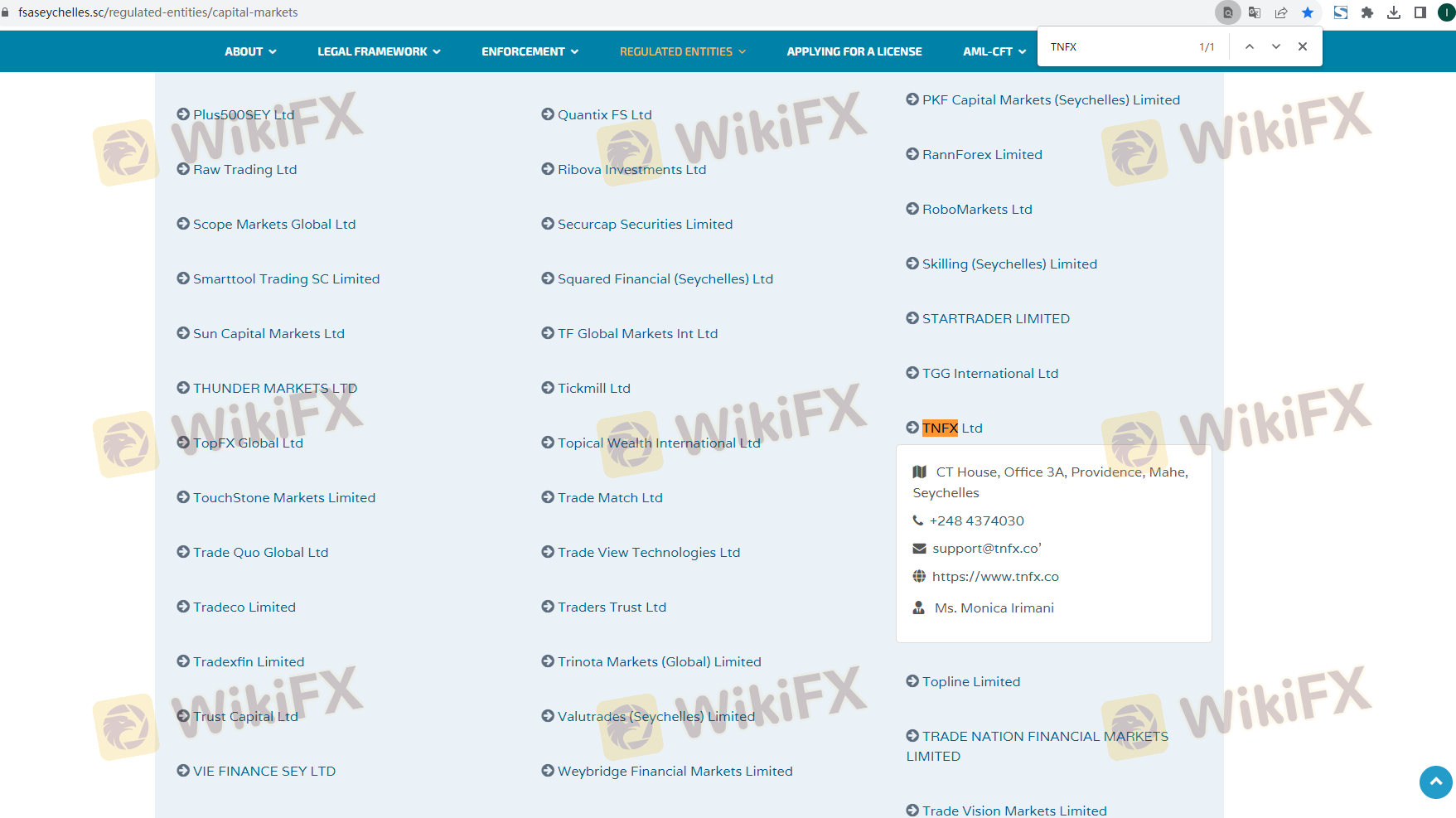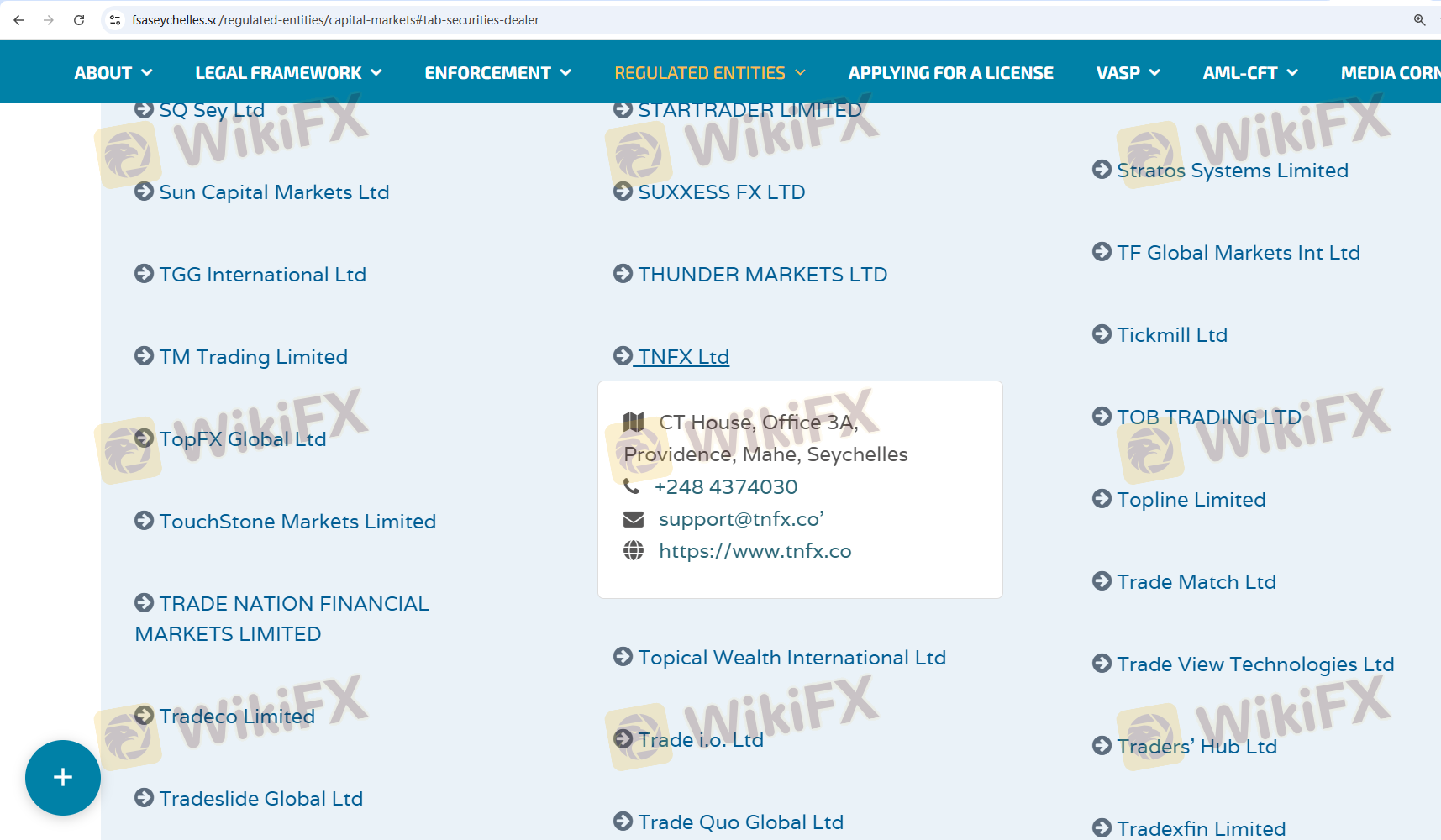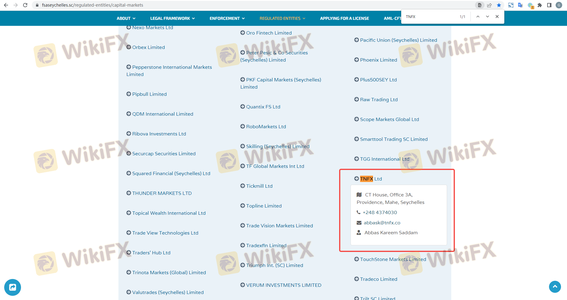Mengenai legitimasi broker forex TNFX, ia menyediakan Seychelles FSA, dan (Kami juga melakukan investigasi lapangan terkait aspek keamanan.).