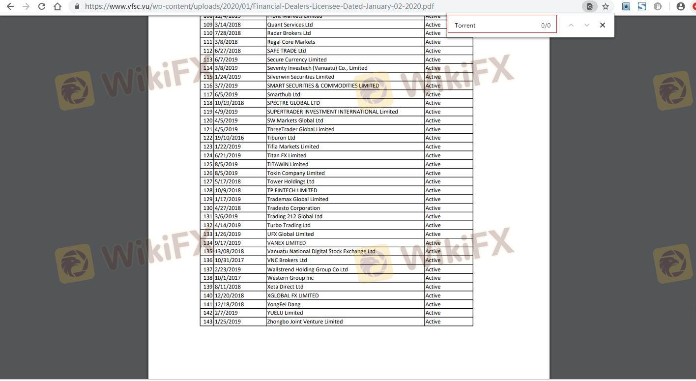 Mengenai legitimasi broker forex Torrent, ia menyediakan Vanuatu VFSC, dan .