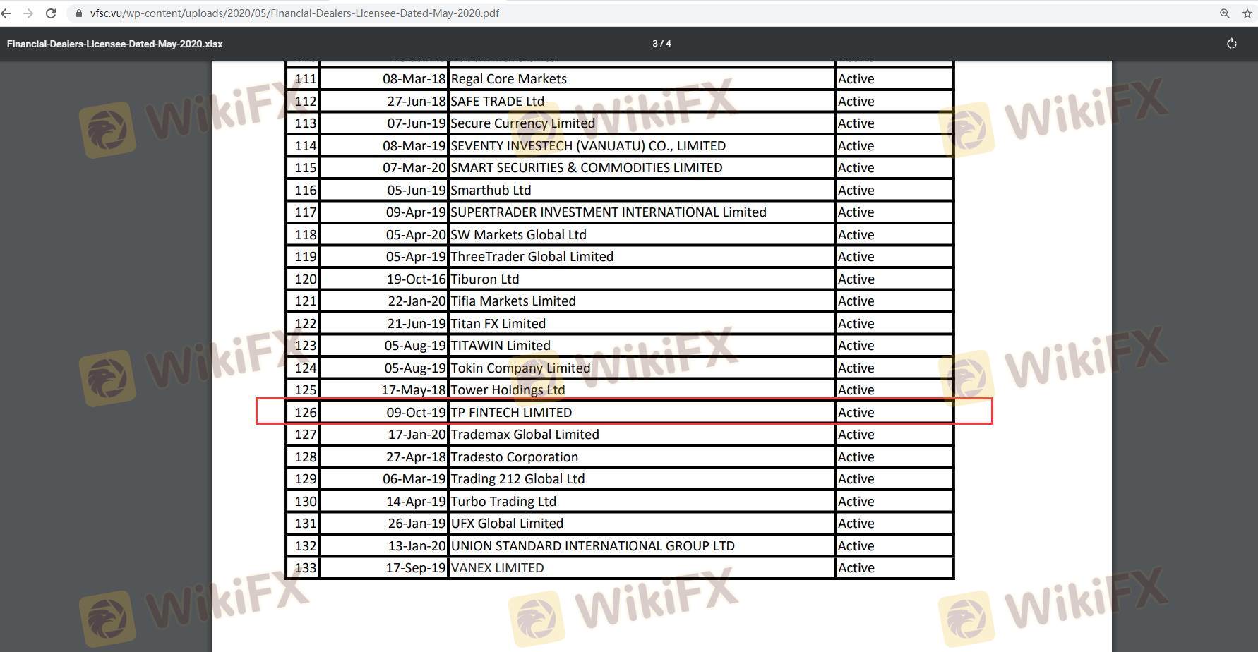 Mengenai legitimasi broker forex TP FinTech, ia menyediakan Vanuatu VFSC, dan .