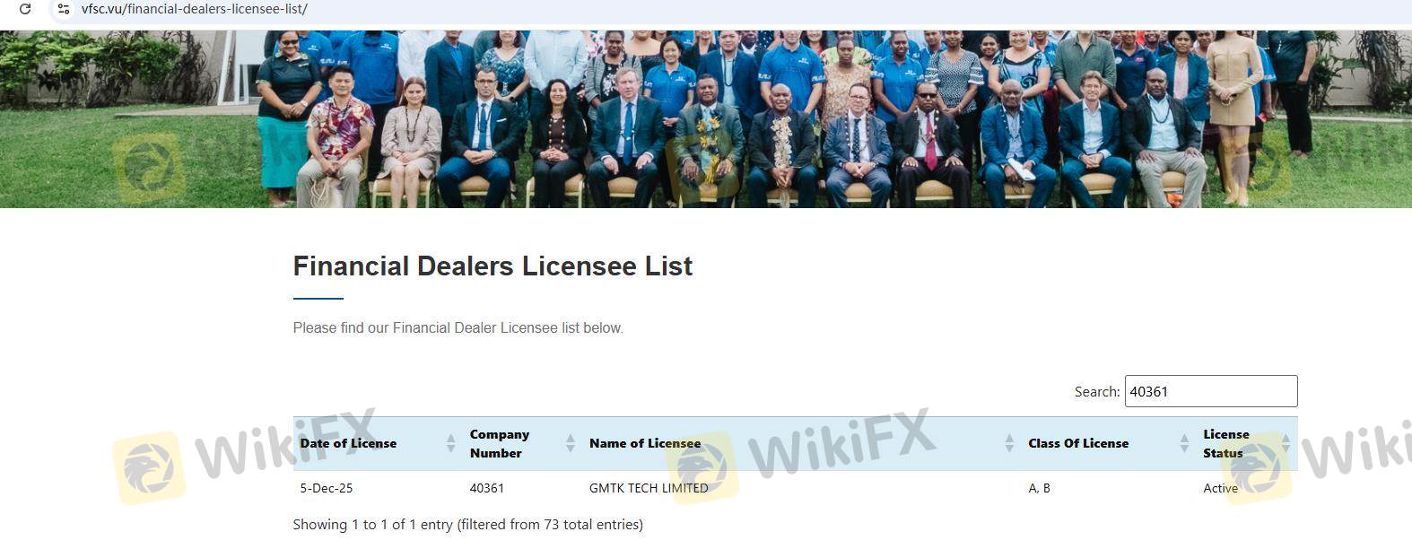 | Vanuatu Financial Services Commission (VFSC) | 40361 | Vanuatu | Dicabut |