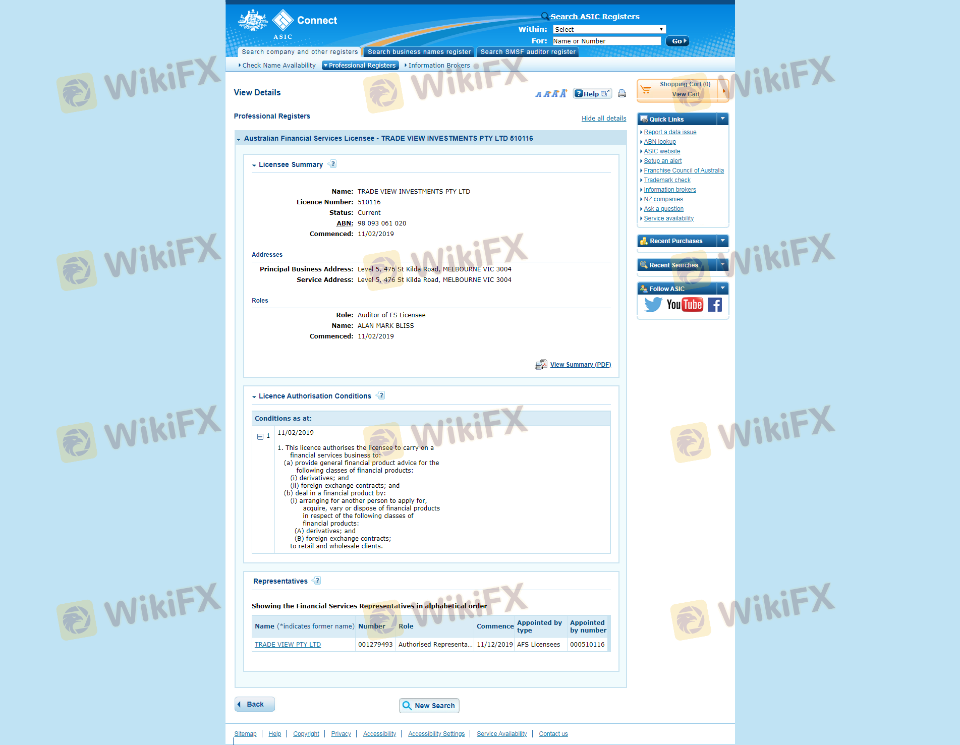 Mengenai legitimasi broker forex Trade View, ia menyediakan Australia ASIC, Australia ASIC, dan (Kami juga melakukan investigasi lapangan terkait aspek keamanan.).