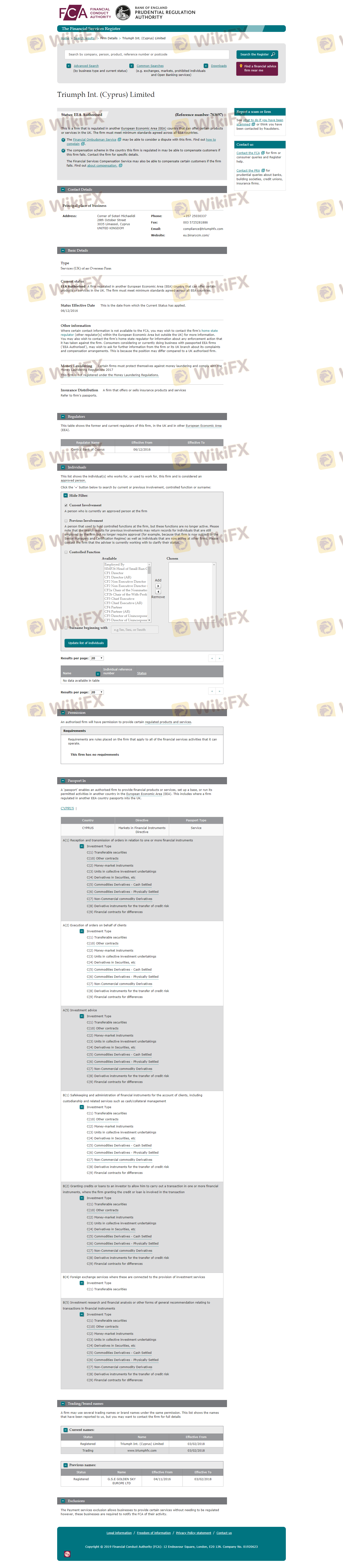 Mengenai legitimasi broker forex TriumphFX, ia menyediakan Kerajaan Inggris FCA, dan .