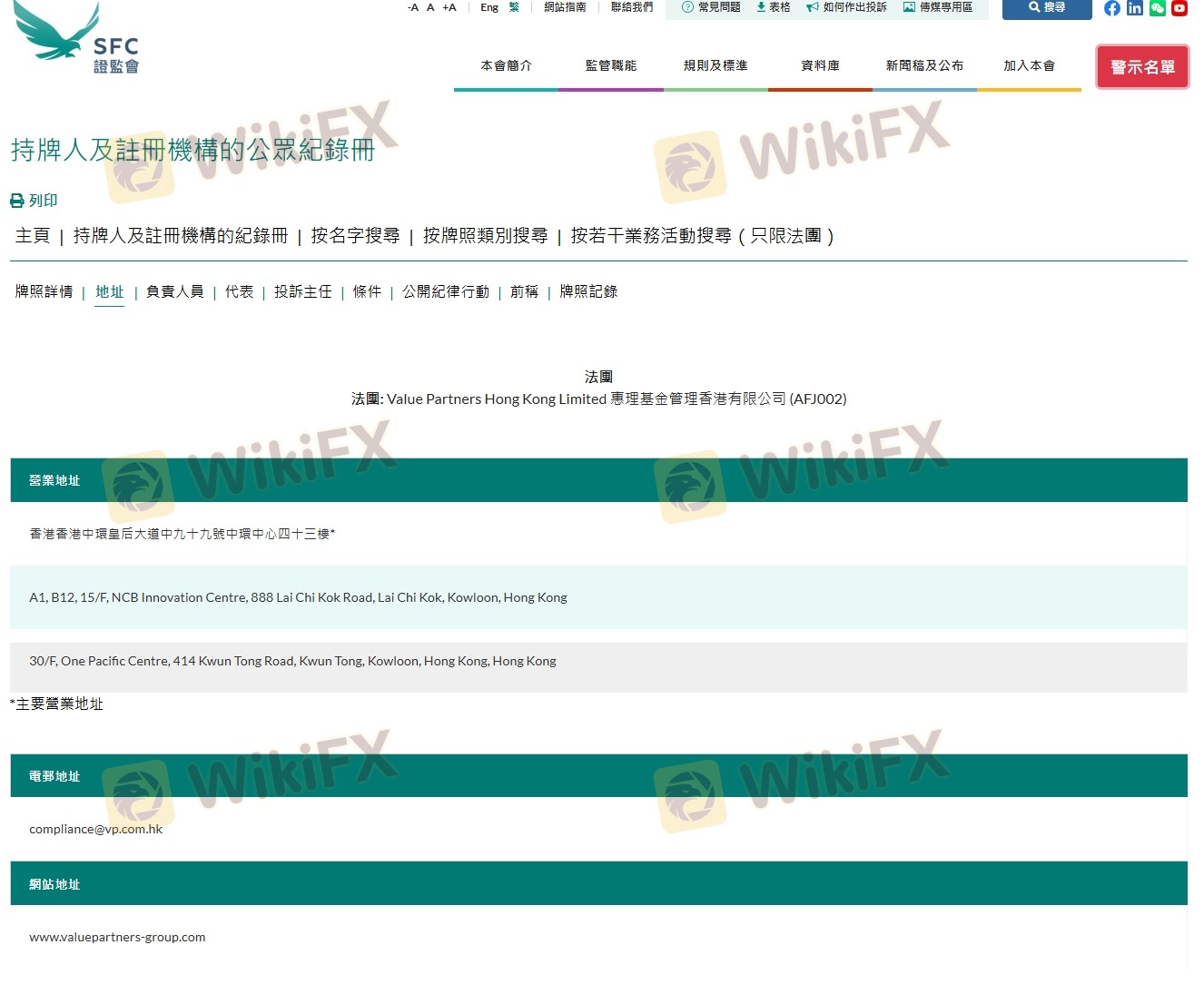Mengenai legitimasi broker forex Value Partners Group, ia menyediakan Hong Kong SFC, Hong Kong SFC, dan (Kami juga melakukan investigasi lapangan terkait aspek keamanan.).