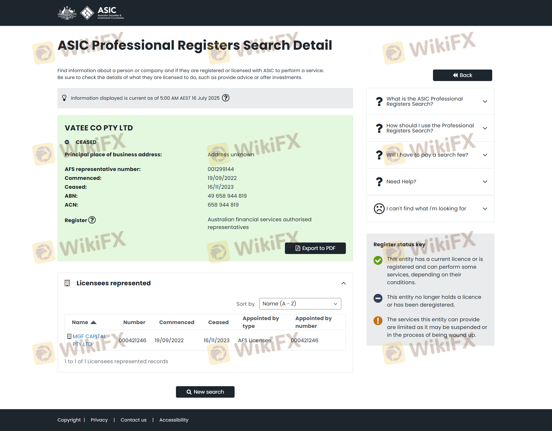 Regulasi adalah aspek penting ketika menilai keamanan dan keandalan seorang broker forex. Vatee beroperasi di bawah pengawasan Vanuatu Financial Services Commission (VFSC) dan mengklaim diatur oleh Australian Securities and Investments Commission (ASIC). Namun, lanskap regulasi ini kompleks, terutama ketika melibatkan broker lepas pantai. Berikut adalah ringkasan informasi regulasi Vatee: