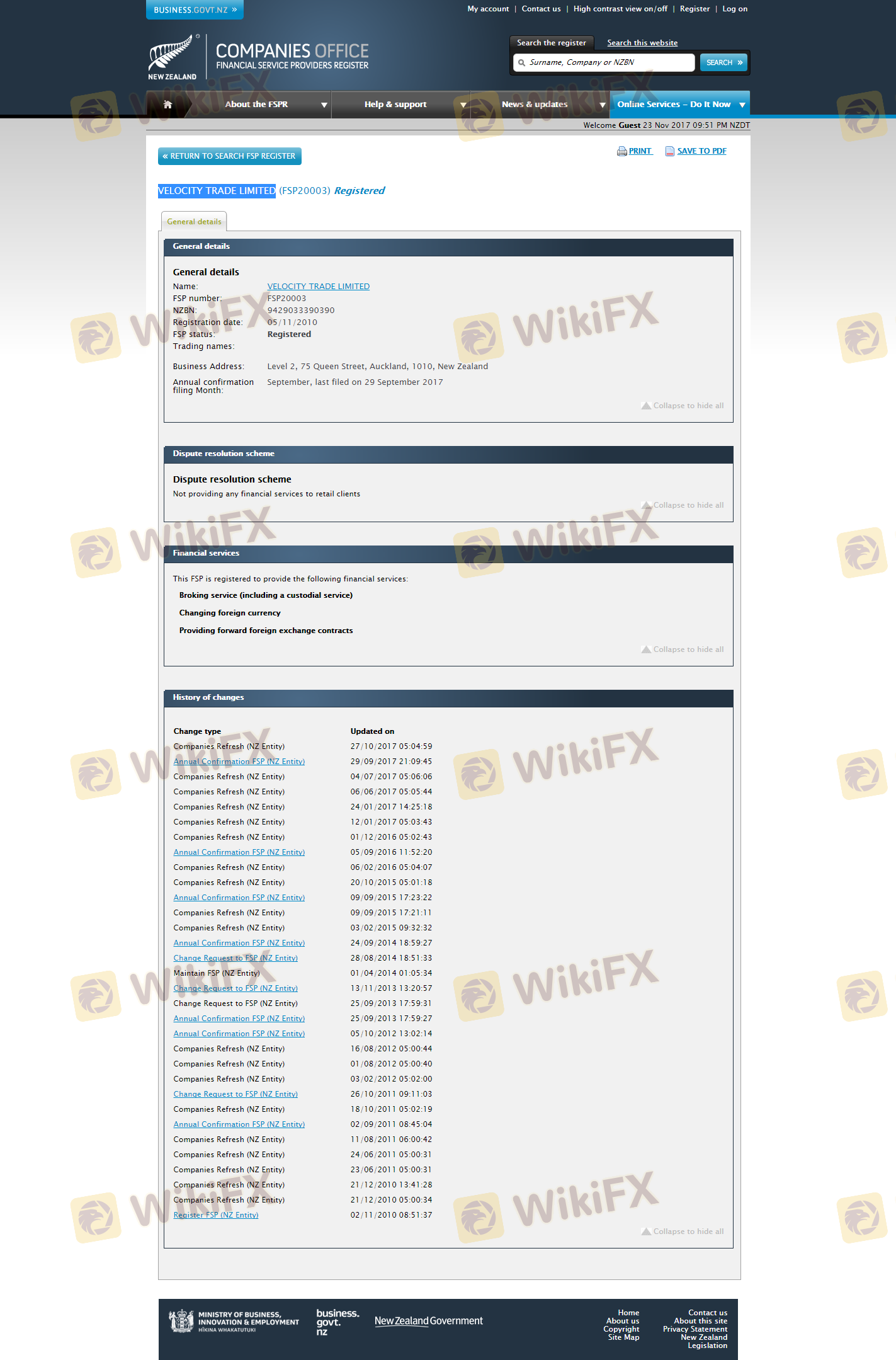 Mengenai legitimasi broker forex Velocity Trade, ia menyediakan Australia ASIC, Kerajaan Inggris FCA, Afrika Selatan FSCA, Selandia Baru FSPR, dan (Kami juga melakukan investigasi lapangan terkait aspek keamanan.).