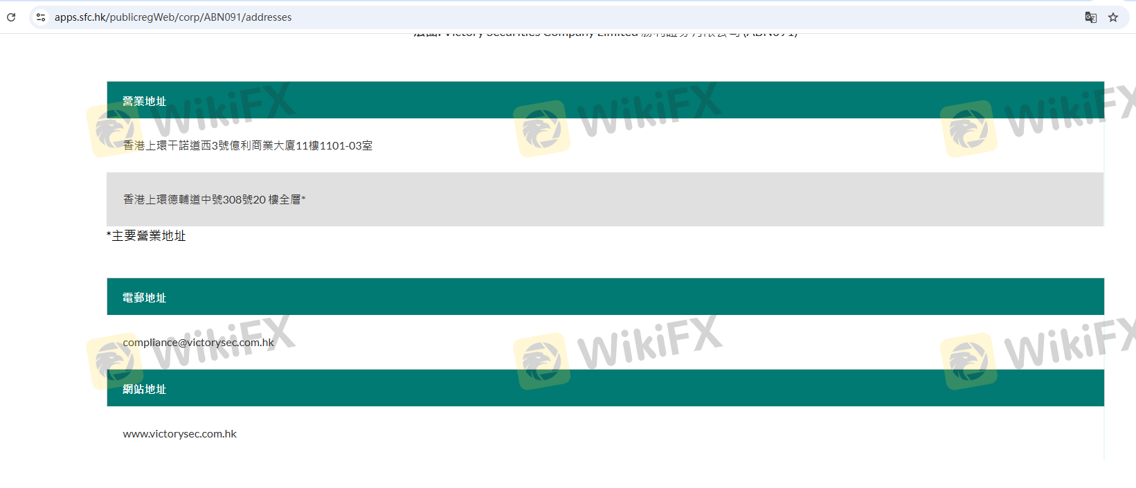 Mengenai legitimasi broker forex Victory Securities, ia menyediakan Hong Kong SFC, dan (Kami juga melakukan investigasi lapangan terkait aspek keamanan.).
