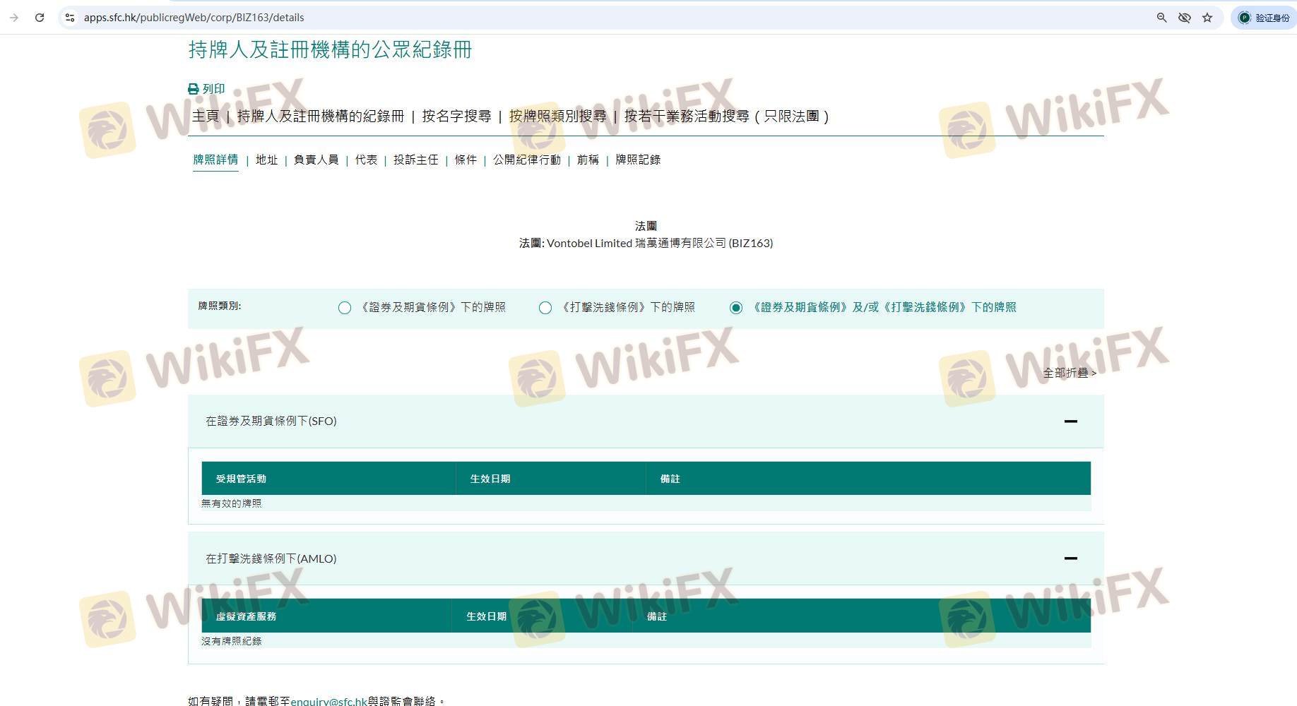 Mengenai legitimasi broker forex Vontobel, ia menyediakan Hong Kong SFC, dan (Kami juga melakukan investigasi lapangan terkait aspek keamanan.).