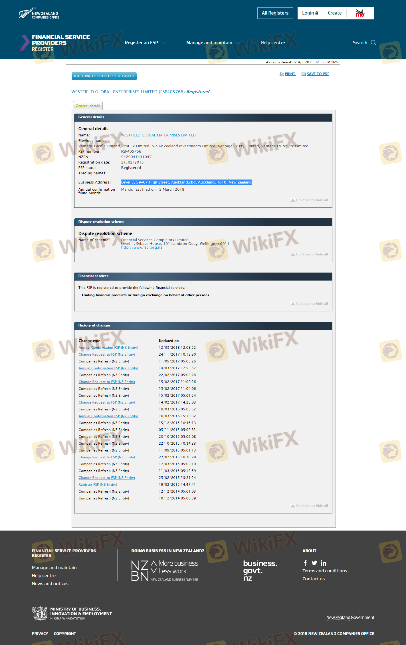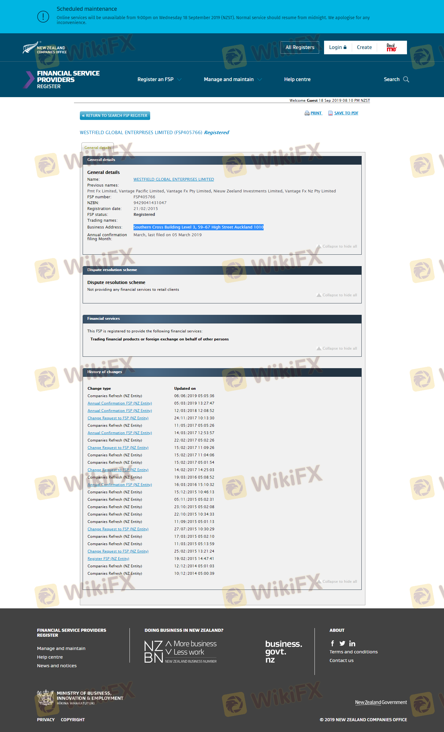 Mengenai legitimasi broker forex Westfield Global, ia menyediakan Selandia Baru FSPR, dan (Kami juga melakukan investigasi lapangan terkait aspek keamanan.).