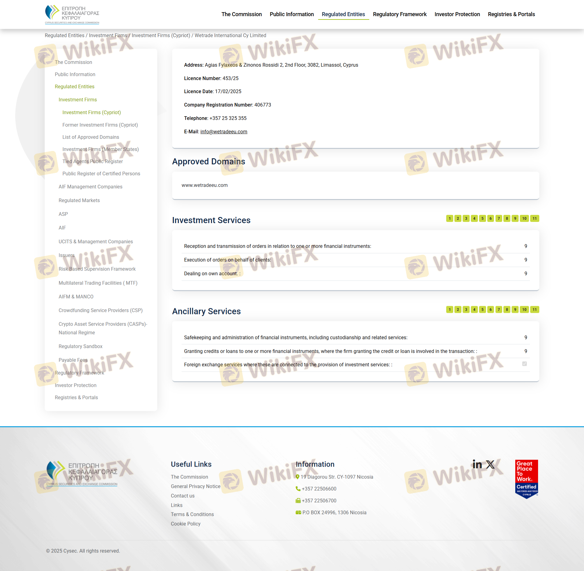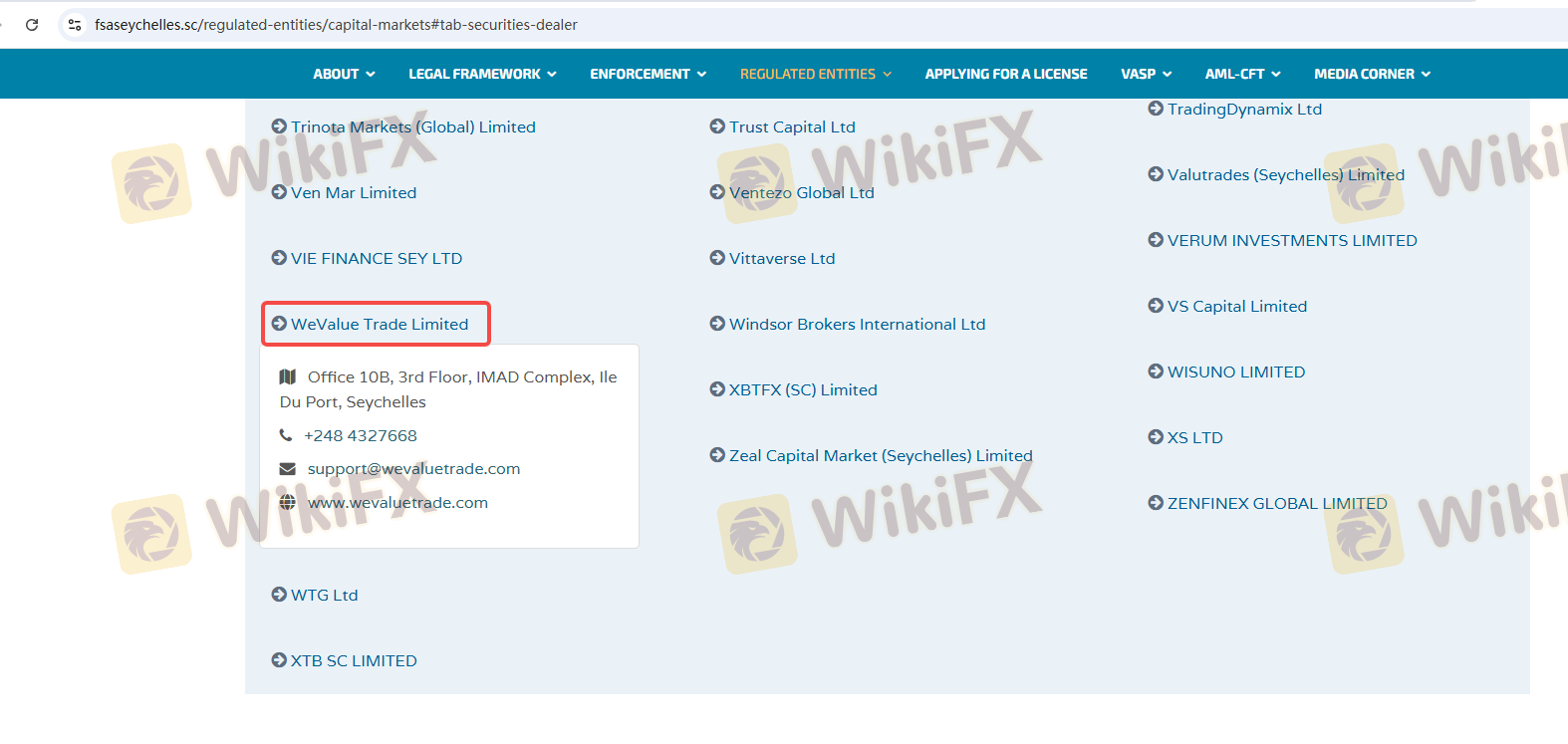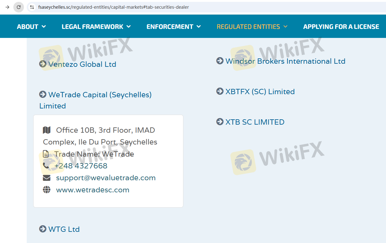 Mengenai legitimasi broker forex WeTrade, ia menyediakan Siprus CYSEC, Australia ASIC, Seychelles FSA, Malaysia LFSA, dan .