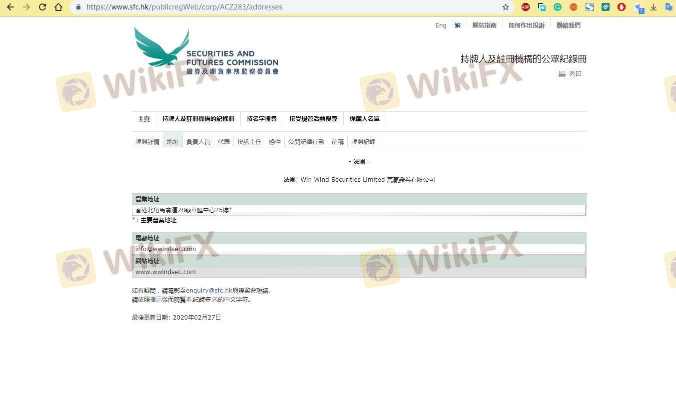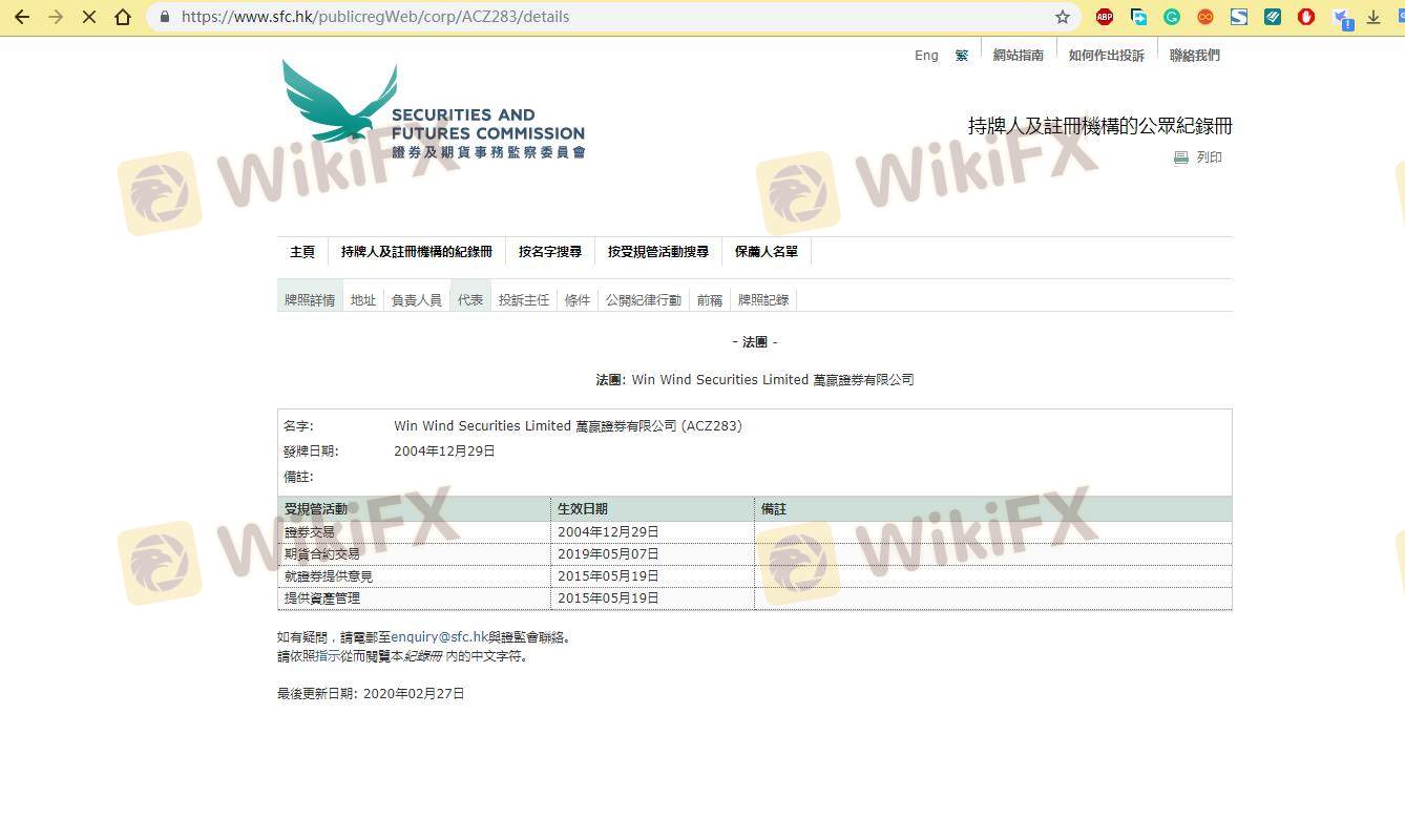 Mengenai legitimasi broker forex Win Wind Capital, ia menyediakan Hong Kong SFC, dan (Kami juga melakukan investigasi lapangan terkait aspek keamanan.).