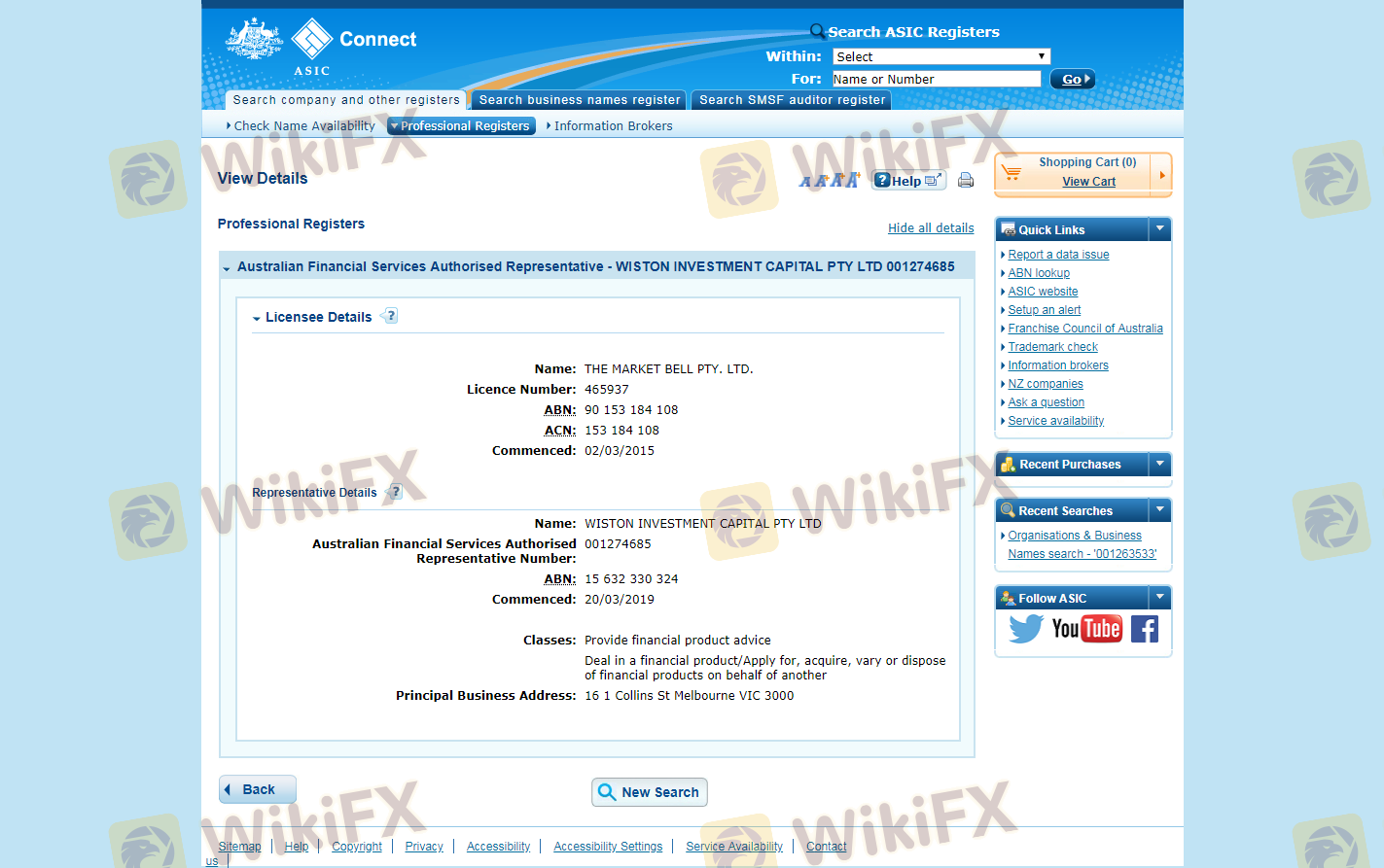 Mengenai legitimasi broker forex WistonFX, ia menyediakan Kerajaan Inggris FCA, Australia ASIC, Australia ASIC, dan (Kami juga melakukan investigasi lapangan terkait aspek keamanan.).