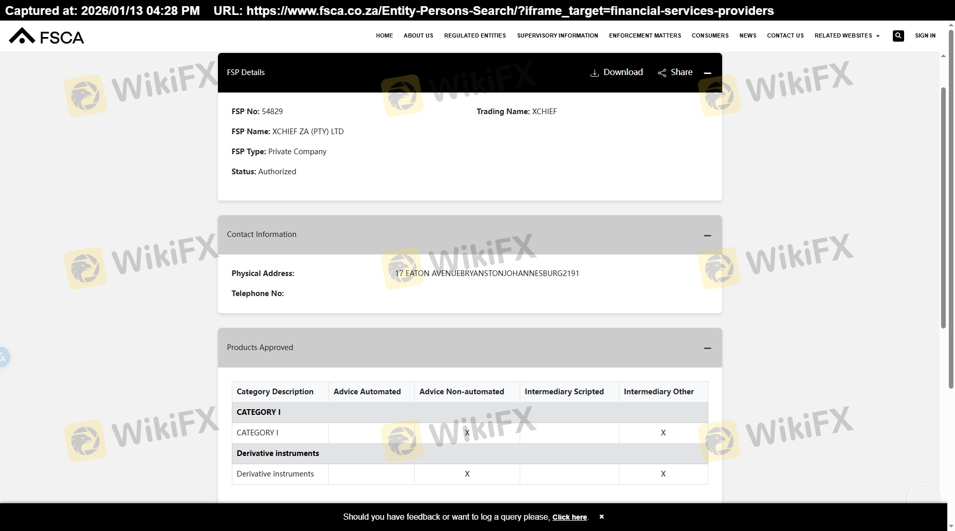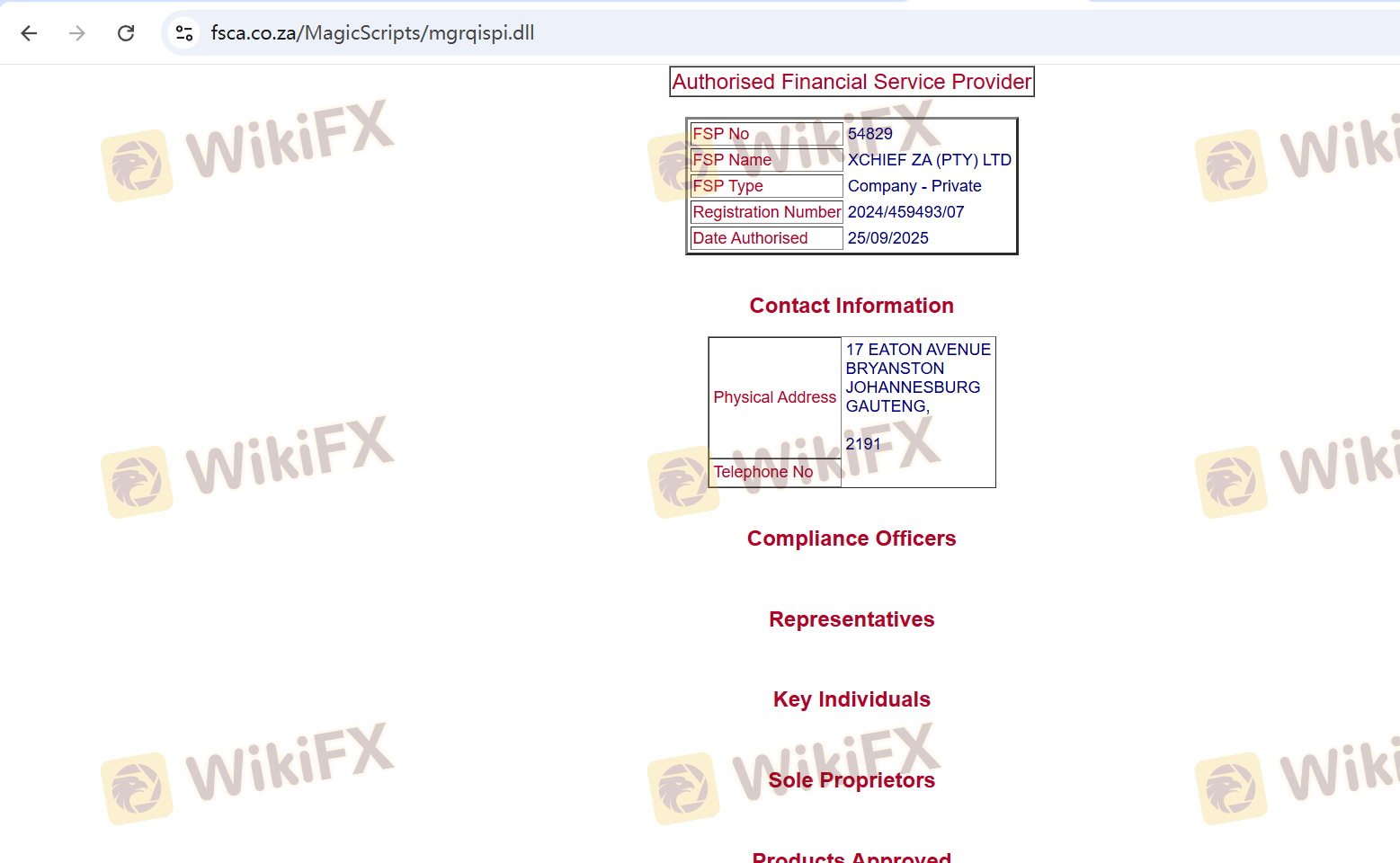 Mengenai legitimasi broker forex xChief, ia menyediakan Afrika Selatan FSCA, Komoro MISA, dan (Kami juga melakukan investigasi lapangan terkait aspek keamanan.).