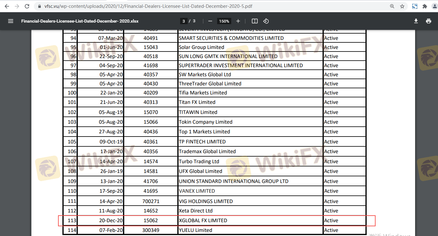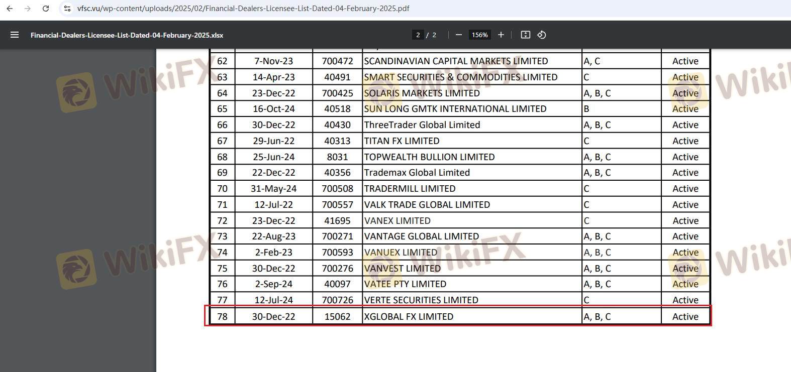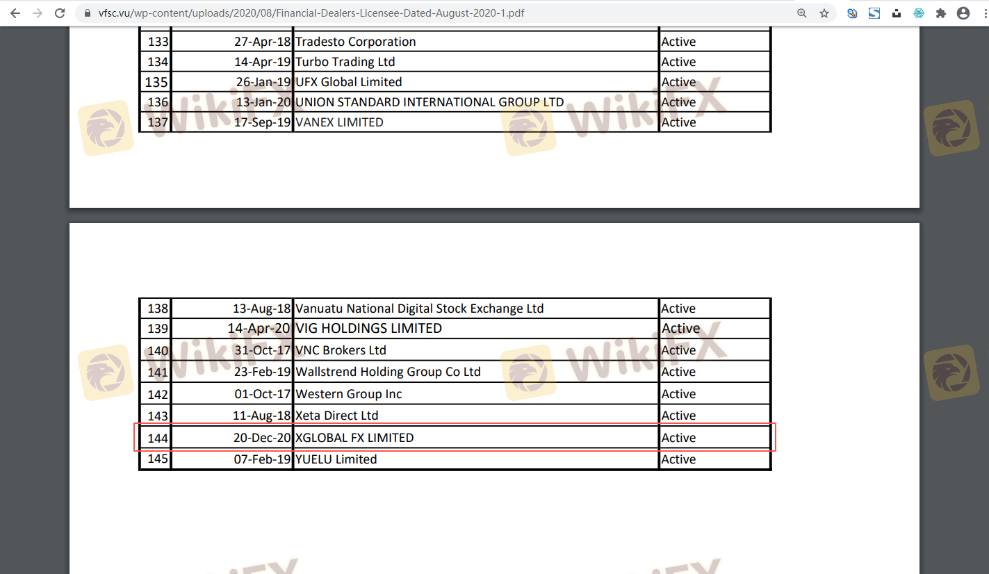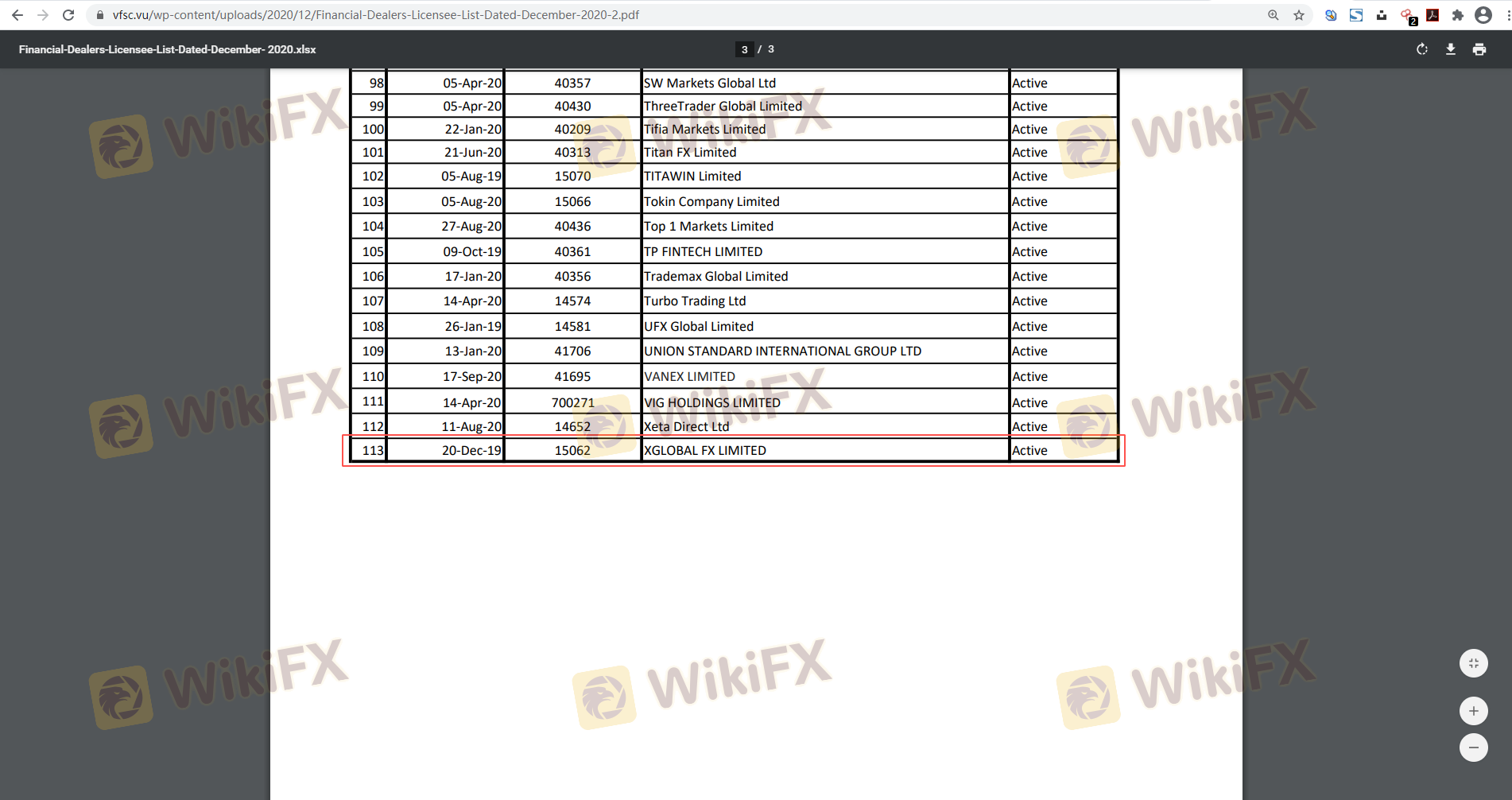 Mengenai legitimasi broker forex XGLOBAL, ia menyediakan Siprus CYSEC, Vanuatu VFSC, dan (Kami juga melakukan investigasi lapangan terkait aspek keamanan.).
