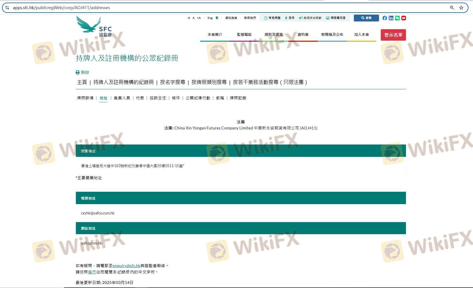 Saat menilai apakah Xin Yongan International aman, aspek pertama yang perlu dipertimbangkan adalah status regulasinya. Regulasi memainkan peran penting dalam memastikan bahwa pialang mematuhi standar perilaku yang ketat, melindungi investor dari potensi penipuan dan pengelolaan yang buruk. Xin Yongan International diatur oleh Komisi Sekuritas dan Futures (SFC) Hong Kong, yang dikenal karena pengawasannya yang ketat terhadap lembaga keuangan.