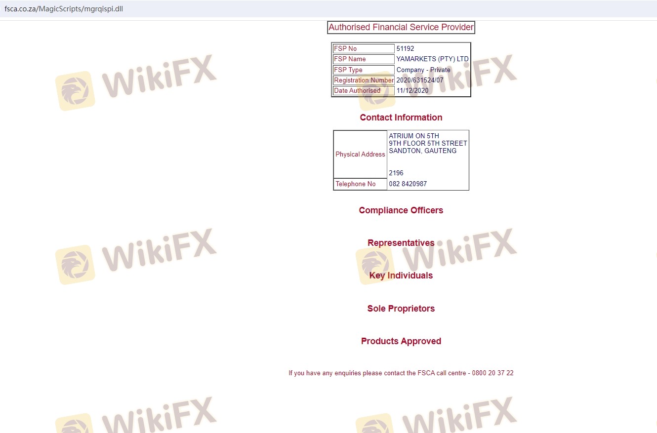 Mengenai legitimasi broker forex YaMarkets, ia menyediakan Afrika Selatan FSCA, Mauritius FSC, dan (Kami juga melakukan investigasi lapangan terkait aspek keamanan.).