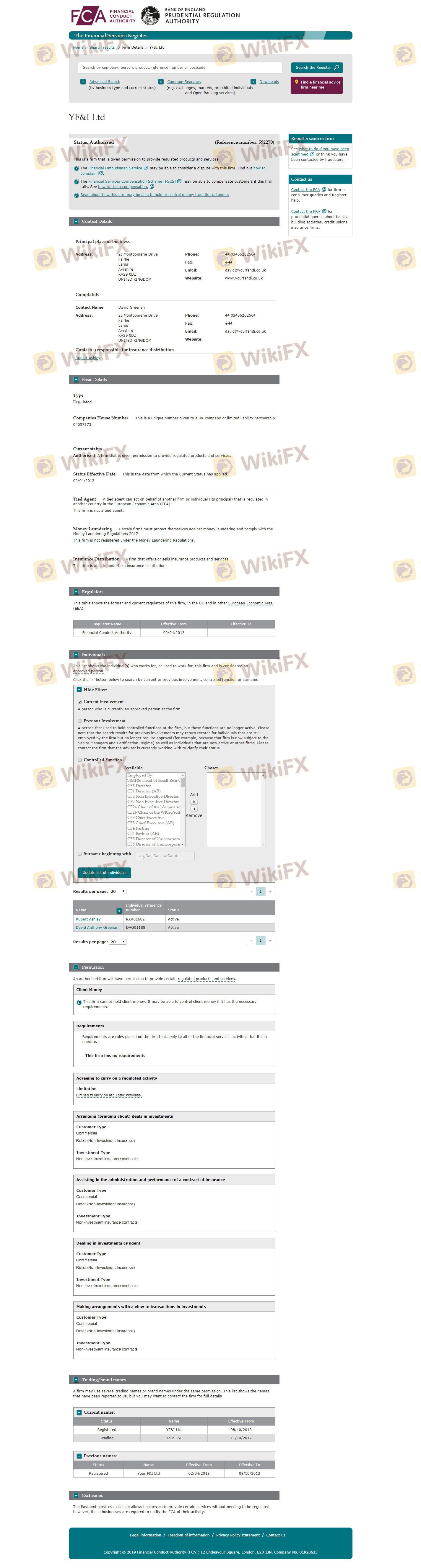 Mengenai legitimasi broker forex YF, ia menyediakan Kerajaan Inggris FCA, dan .