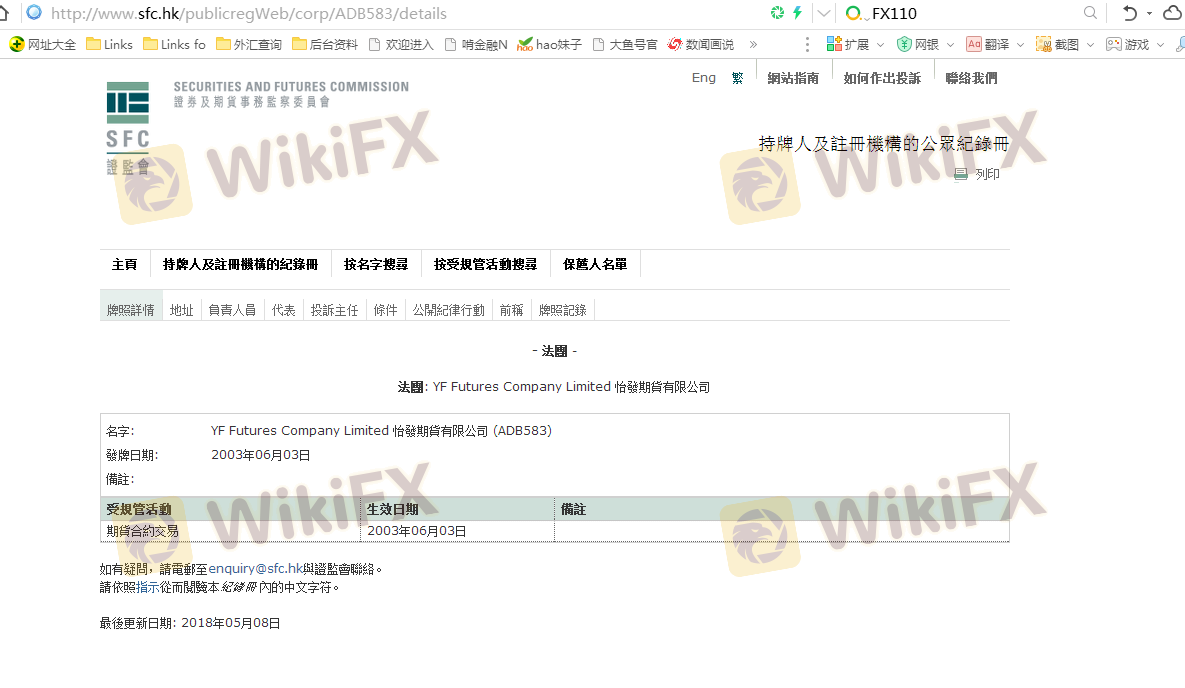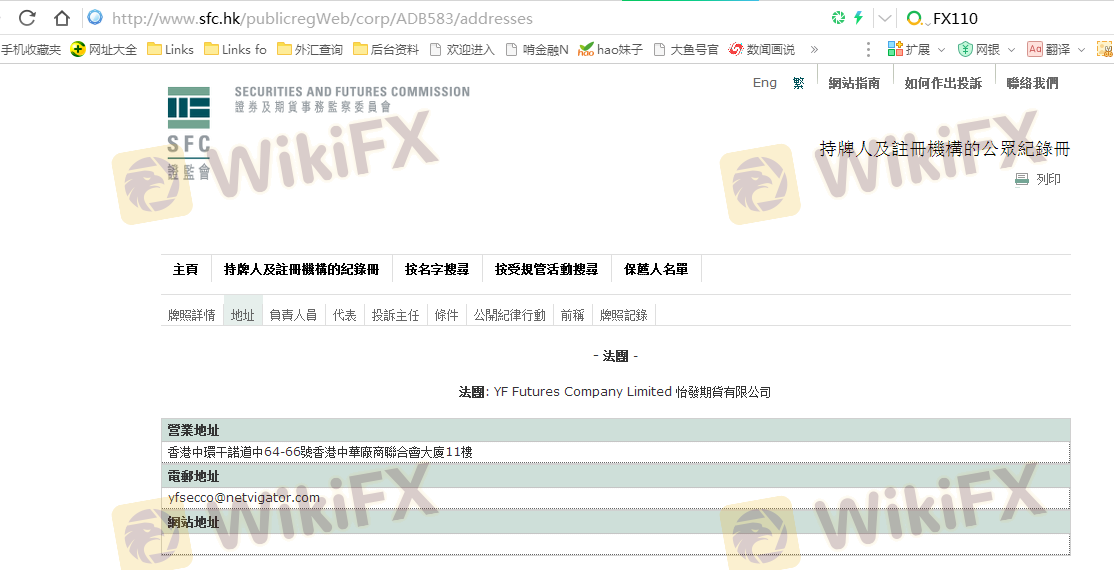 Mengenai legitimasi broker forex yifa, ia menyediakan Hong Kong SFC, dan (Kami juga melakukan investigasi lapangan terkait aspek keamanan.).