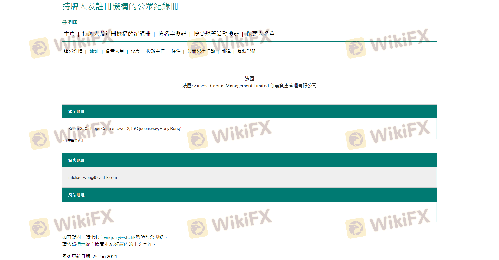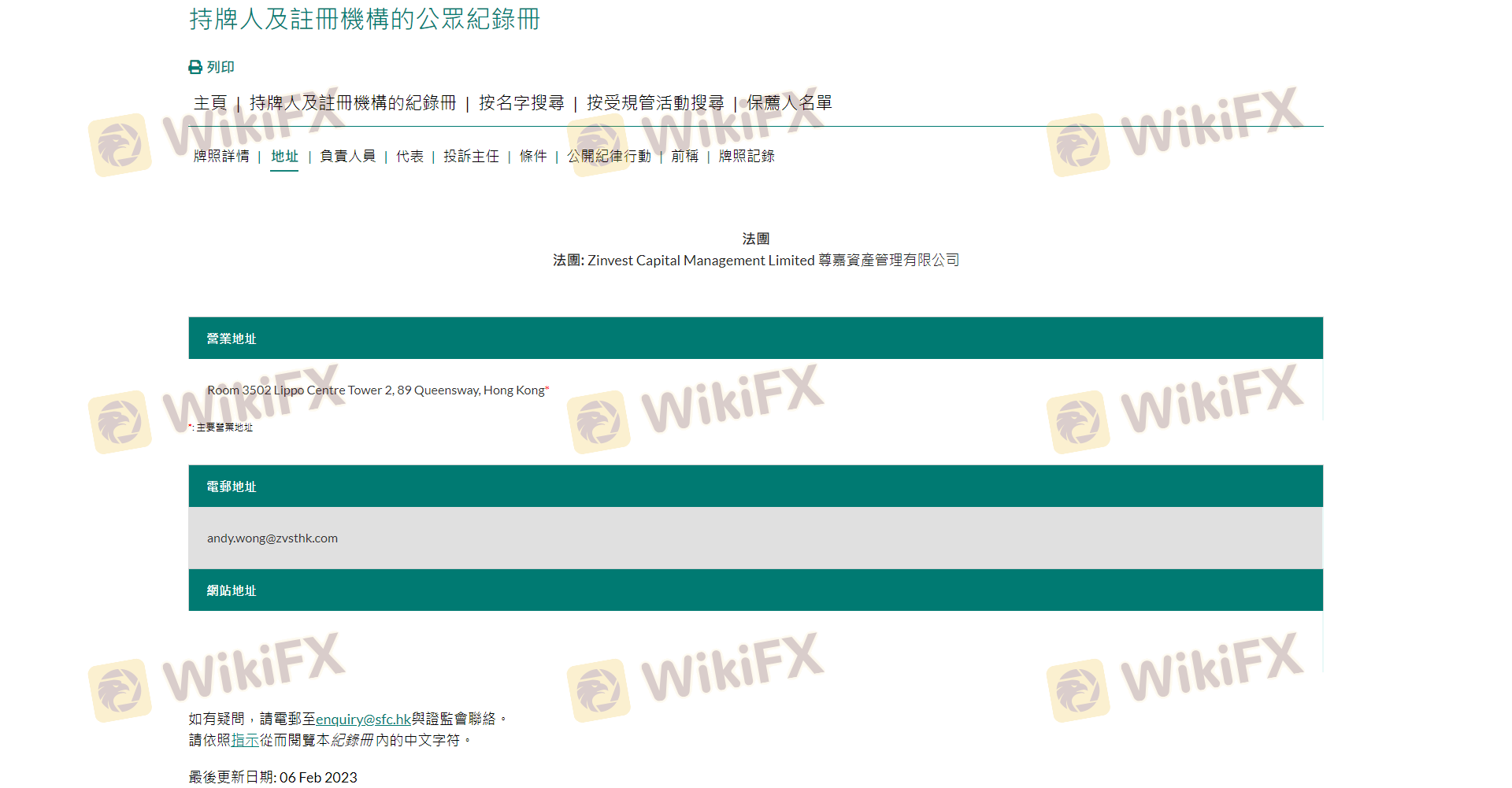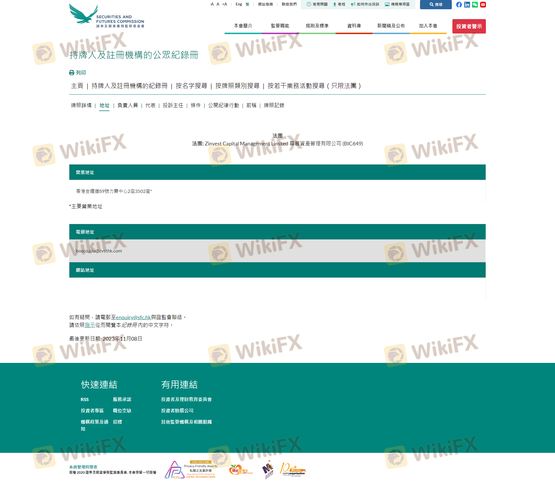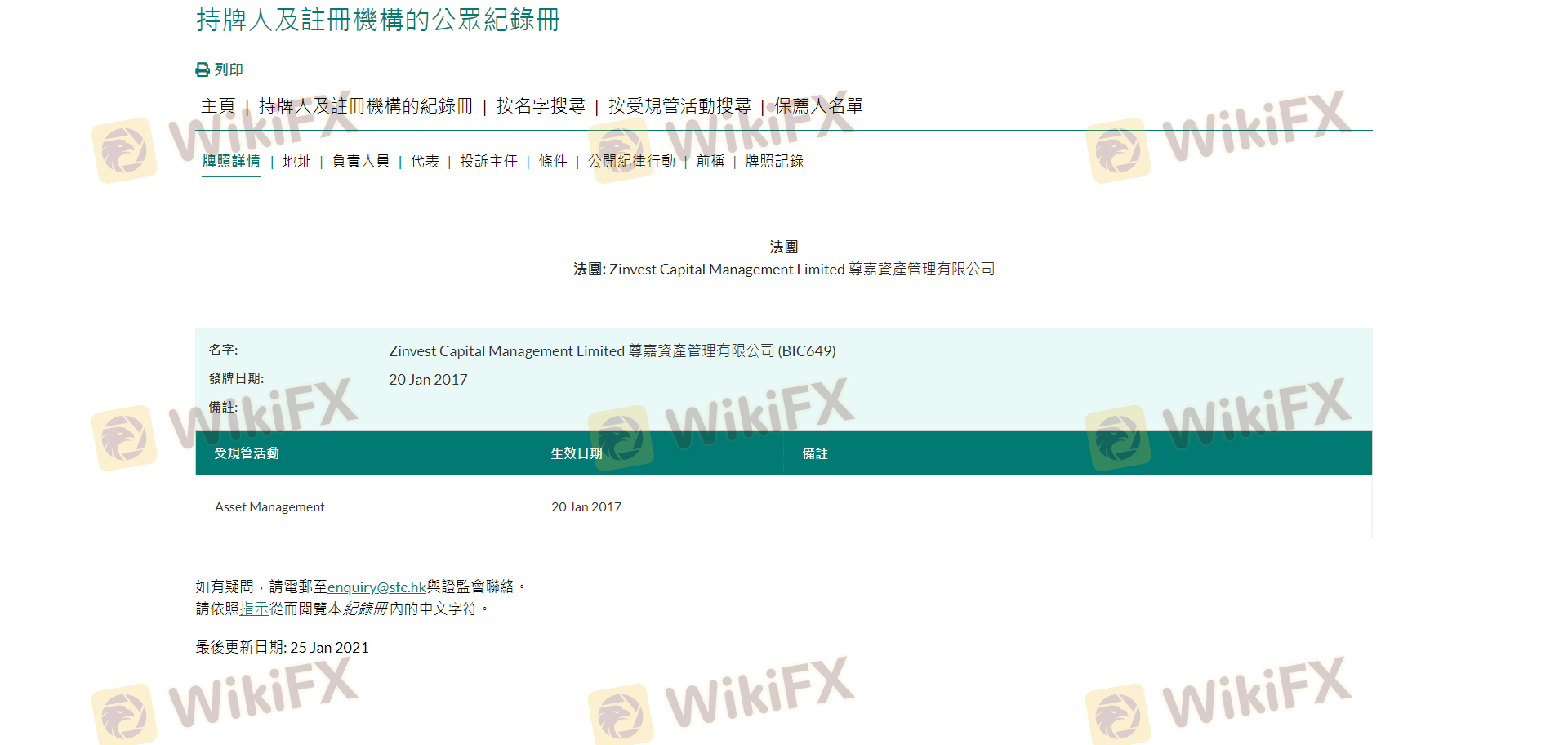 Mengenai legitimasi broker forex Zinvest, ia menyediakan Hong Kong SFC, Hong Kong SFC, dan (Kami juga melakukan investigasi lapangan terkait aspek keamanan.).