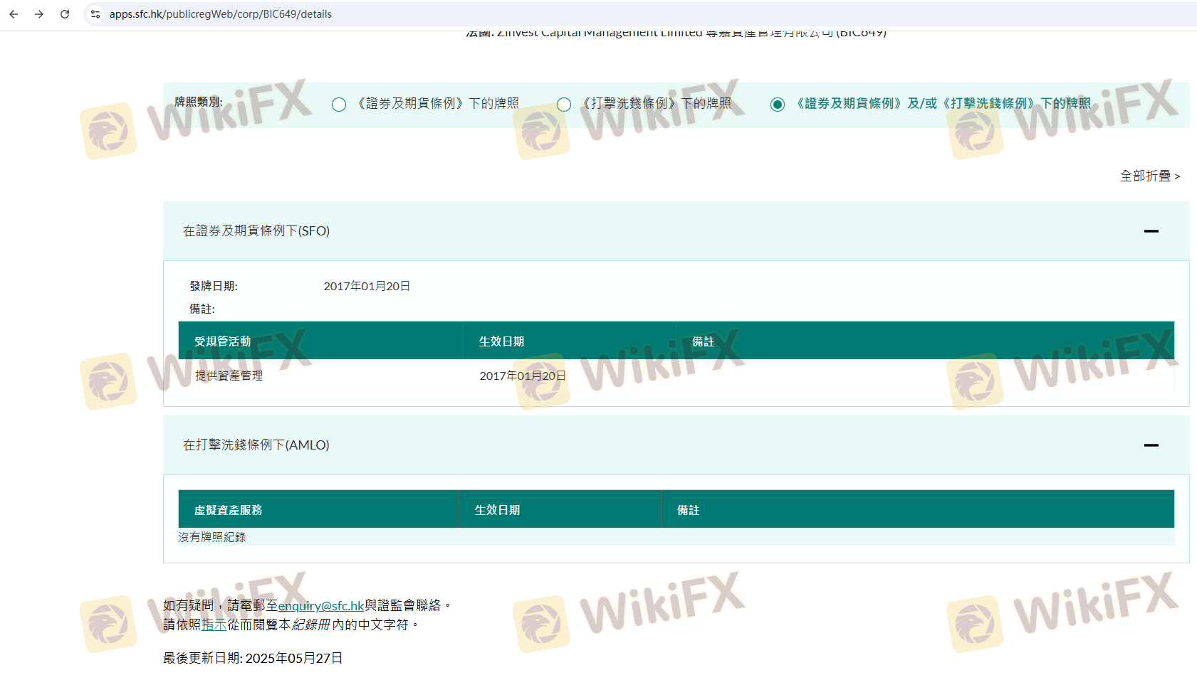 Status regulasi sebuah pialang adalah salah satu faktor paling kritis dalam menentukan keamanannya. Zinvest beroperasi di bawah pengawasan Hong Kong Securities and Futures Commission (SFC), yang dikenal dengan standar regulasinya yang ketat. Tabel berikut merangkum informasi inti regulasi untuk Zinvest: