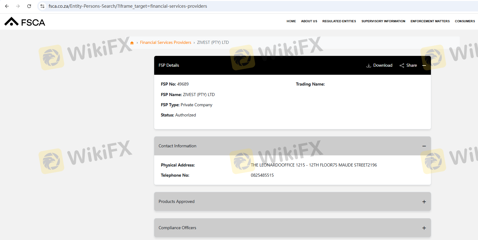 Kerangka regulasi merupakan aspek penting dari legitimasi sebuah broker, karena memastikan kepatuhan terhadap standar hukum dan memberikan perlindungan bagi trader. Zivest diatur oleh Financial Sector Conduct Authority (FSCA) di Afrika Selatan, yang bertanggung jawab mengawasi entitas keuangan non-bank. Broker ini menerima otorisasinya pada 10 Oktober 2018, dengan nomor lisensi 49689. Pengawasan regulasi ini penting karena menunjukkan bahwa Zivest tunduk pada pengawasan dan harus mematuhi standar operasional tertentu.