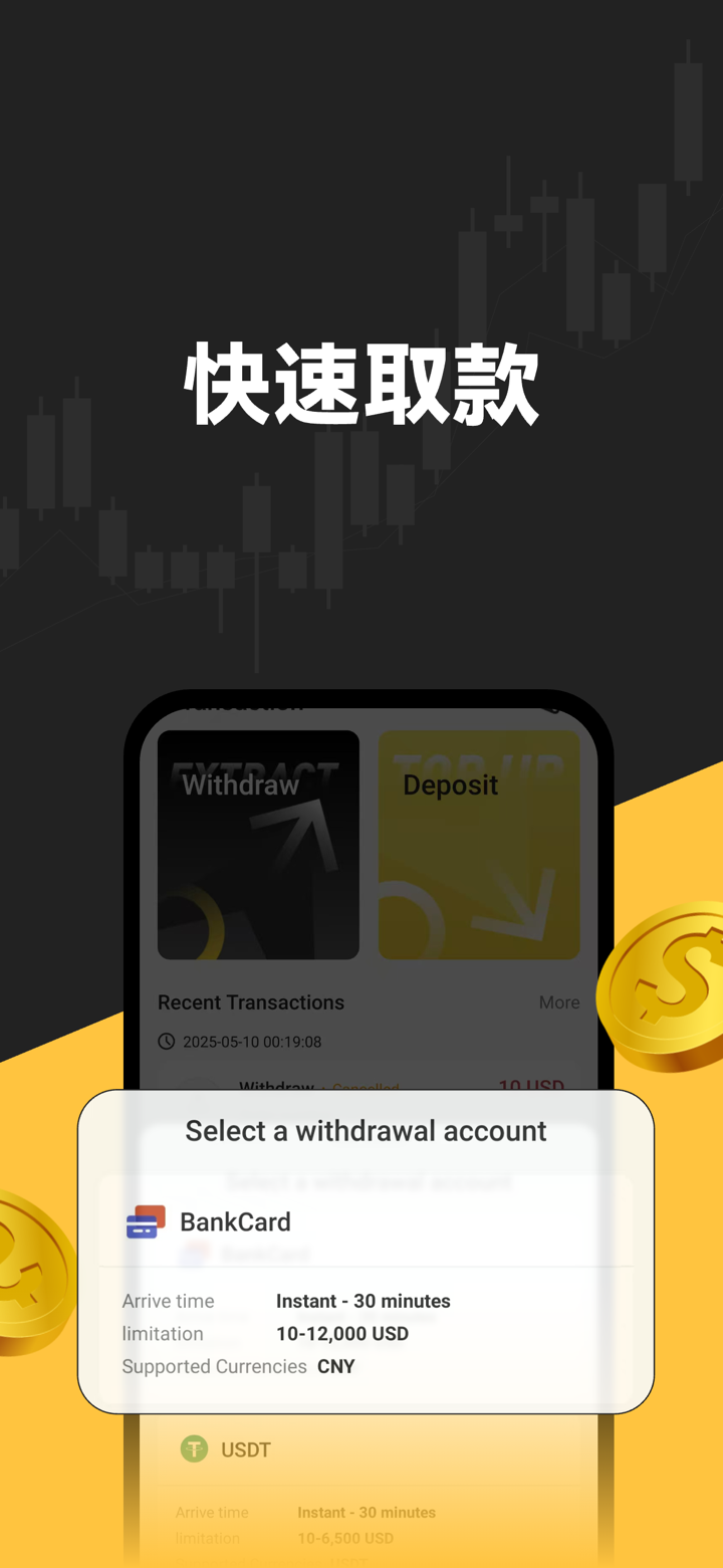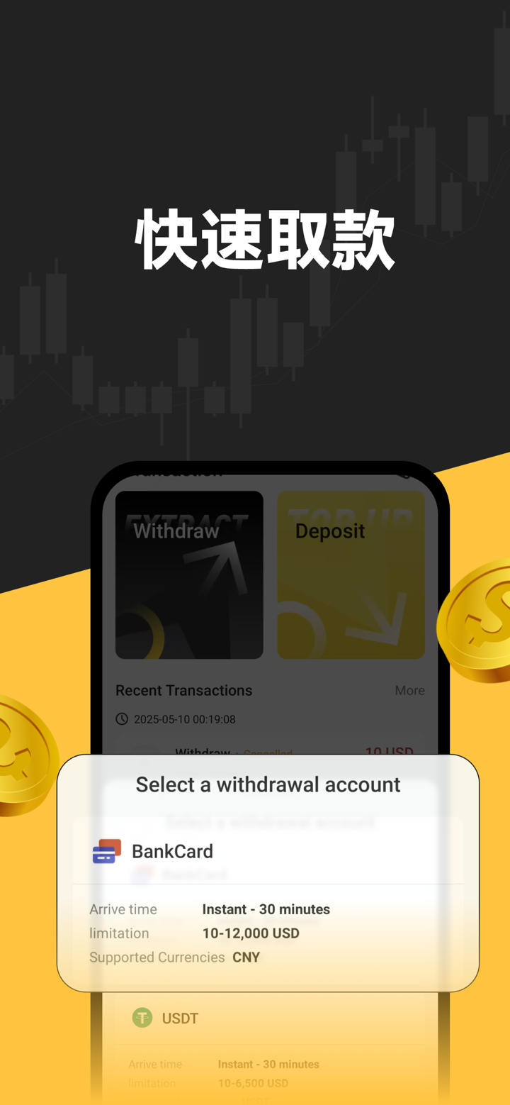 - Методы финансирования: Пополняйте и выводите средства напрямую в приложении.