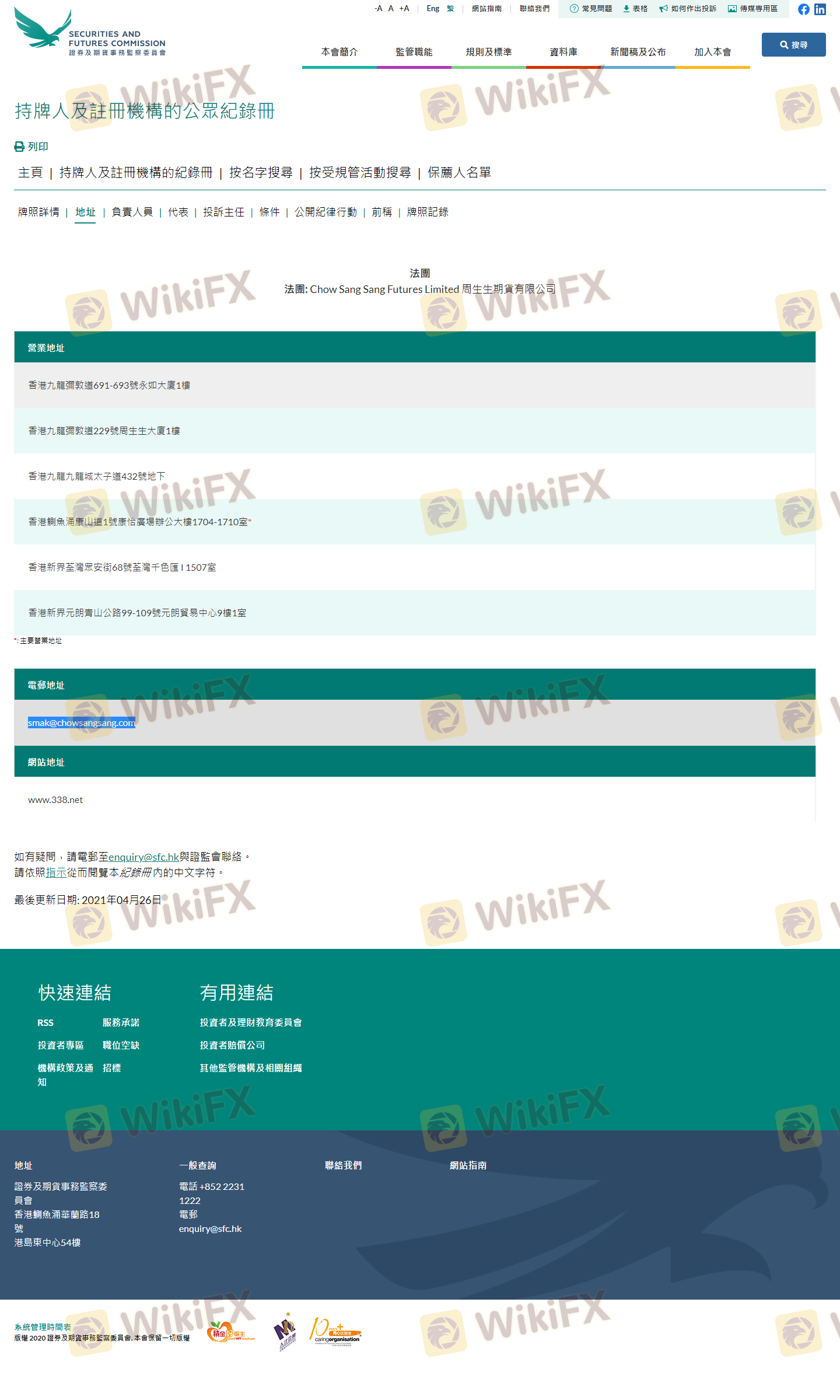 Что касается легитимности форекс-брокера ChowSangSang, он предоставляет SFC и (также есть графический обзор по безопасности).