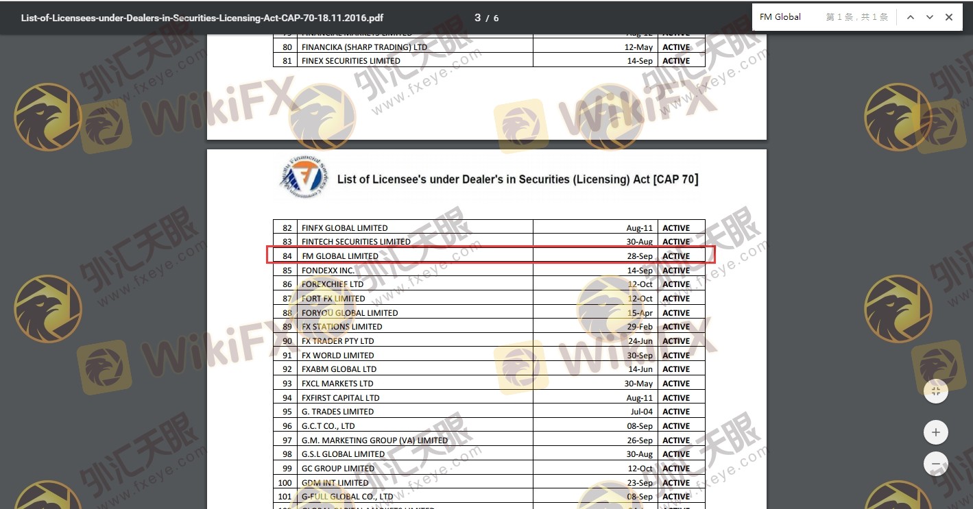 FM Global Последний рейтинг отрасли — 1.61, чем выше оценка, тем безопаснее из 10, чем больше регулирующих лицензий, тем более законно. 1.61 Если оценка слишком низкая, есть риск мошенничества, обратите внимание на выбор, которого следует избегать.