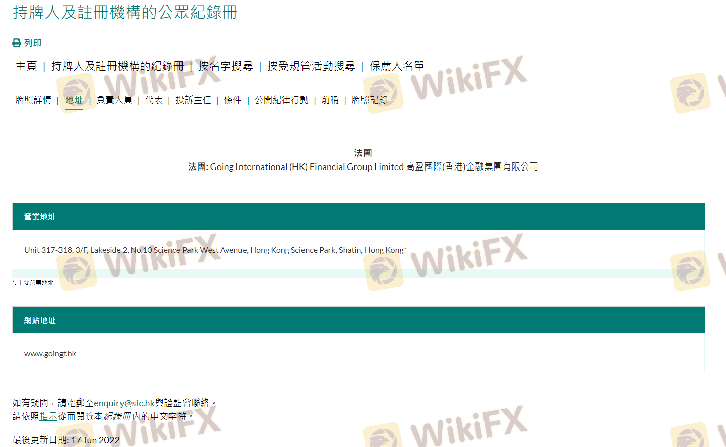 Что касается легитимности форекс-брокера GOING INTERNATIONAL, он предоставляет SFC и (также есть графический обзор по безопасности).