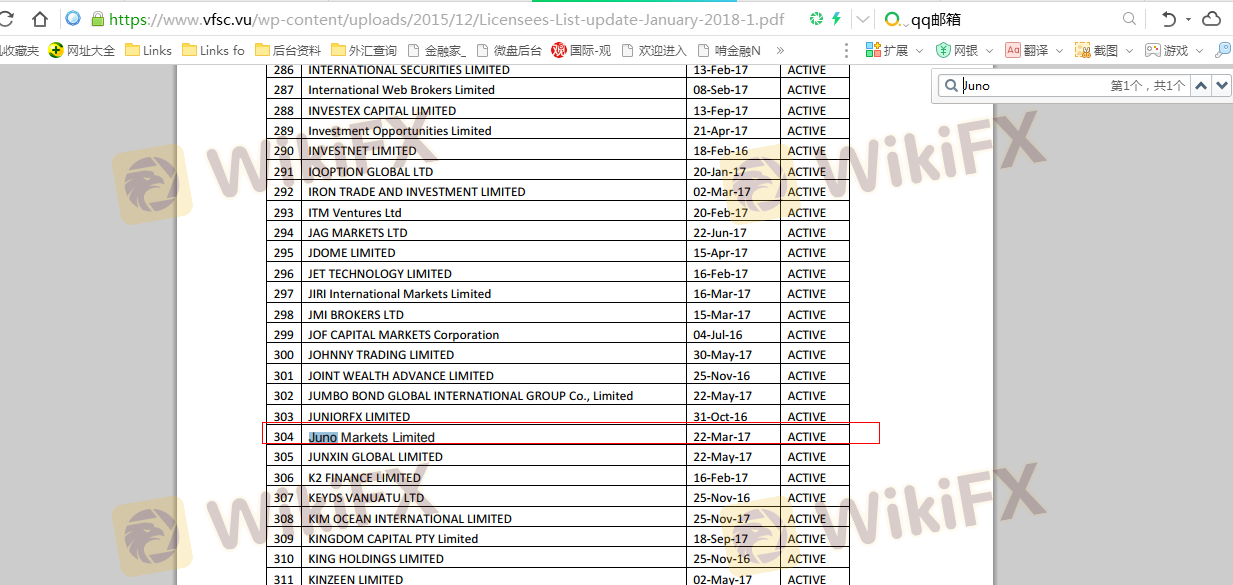 Что касается легитимности форекс-брокера JUNO, он предоставляет ASIC, VFSC и (также есть графический обзор по безопасности).