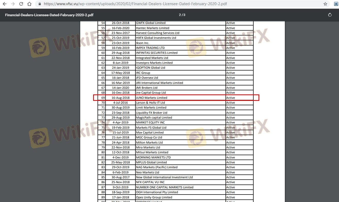 Juno Markets Limited зарегистрирована в Вануату, юрисдикции, часто ассоциируемой с офшорными финансовыми услугами. Компания работает с 2014 года и с тех пор стремится обслуживать глобальную аудиторию, уделяя особое внимание азиатским рынкам. Структура собственности Juno Markets не раскрывается прозрачно, что является общей проблемой среди офшорных брокеров. Команда менеджеров состоит из лиц с опытом работы в финансах и трейдинге, но конкретные детали их профессиональной истории и квалификации ограничены. Эта непрозрачность может вызывать беспокойство у потенциальных клиентов, поскольку ставит под сомнение подотчетность и управление брокера.