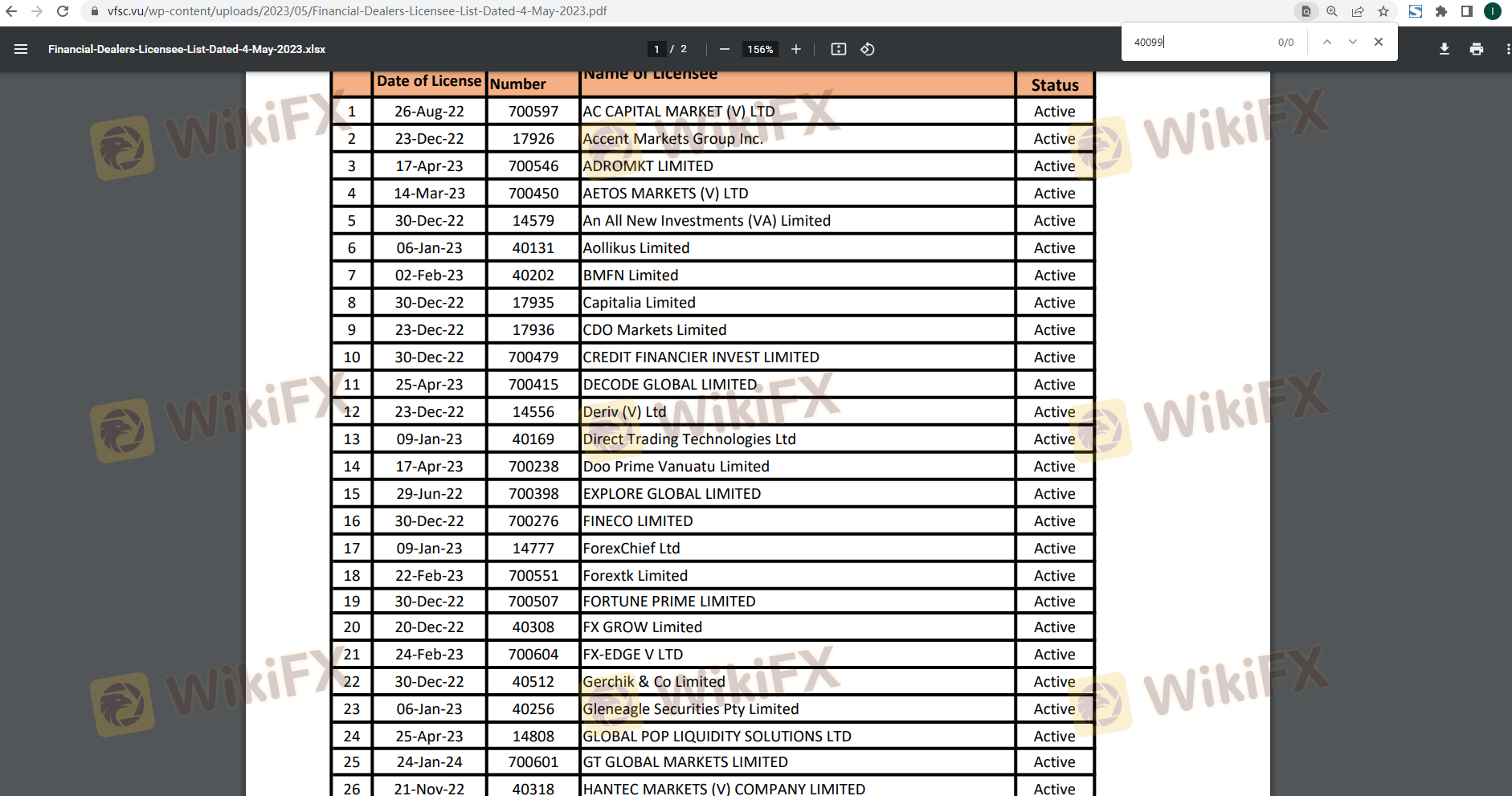 | VFSC | 40099 | Вануату | Подтверждено |
