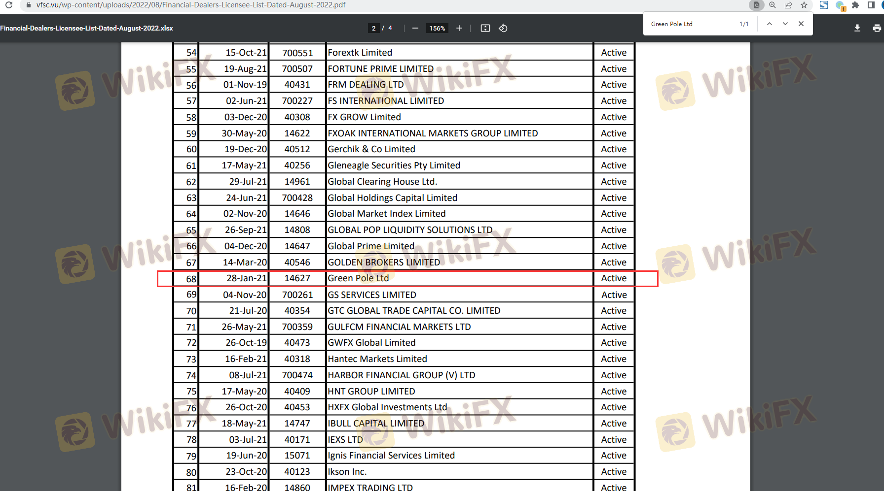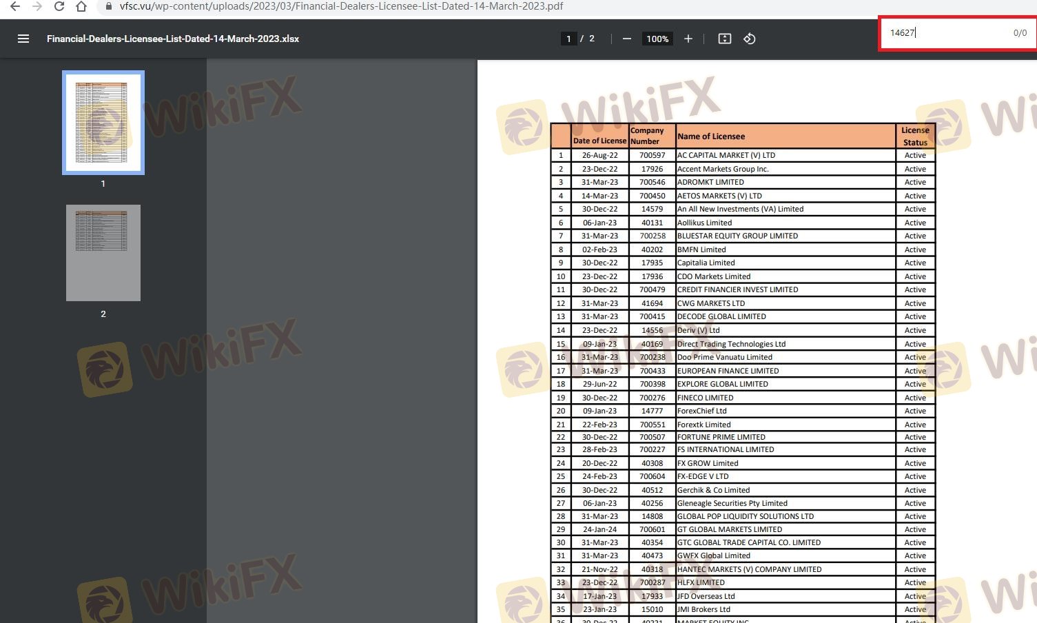 | Комиссия по финансовым услугам Вануату | 14627 | Вануату | Аннулирован |