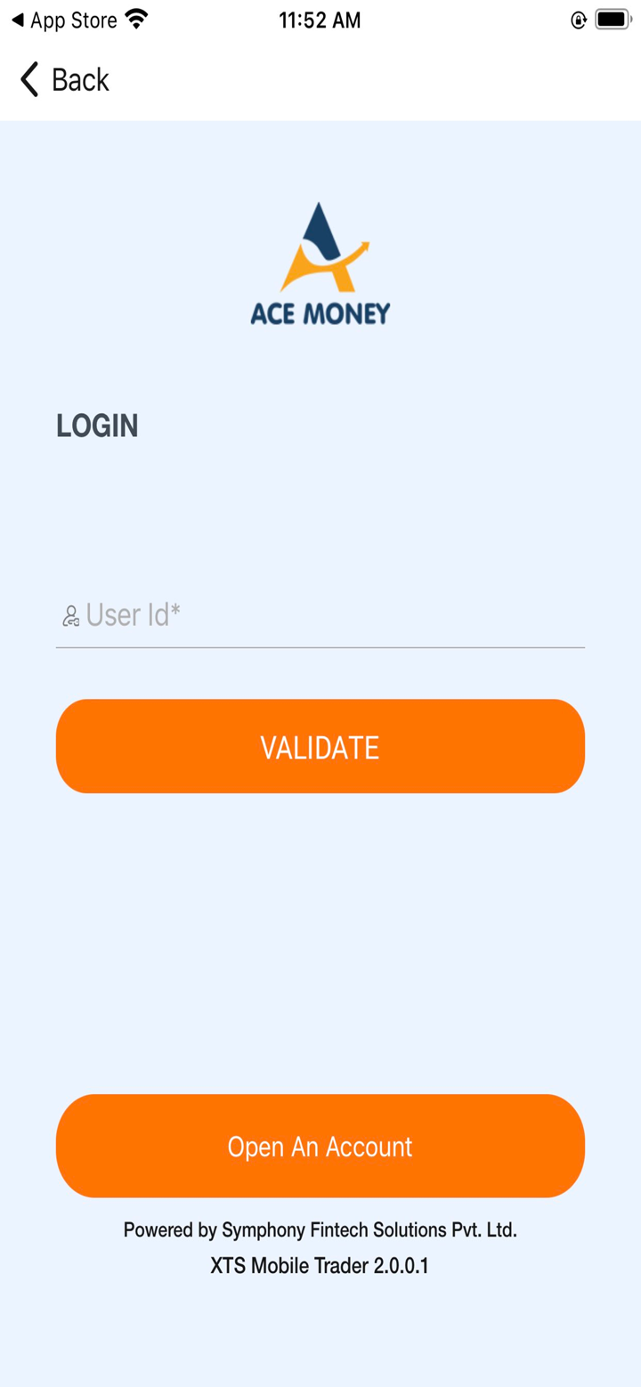 - เปิดแอปและเข้าสู่ระบบด้วยข้อมูลประจำตัว acemoney ของคุณ