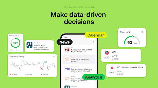รับข้อมูลข่าวสารโดยใช้คุณสมบัติข่าวตลาดและการวิเคราะห์ของแอปเพื่อติดตามเหตุการณ์ทางเศรษฐกิจและการเคลื่อนไหวของตลาด
