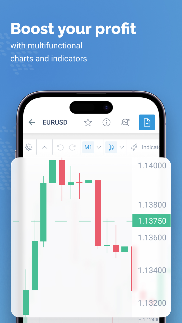 ใช้เครื่องมือเทรดของแอป รวมถึงแผนภูมิและอินดิเคเตอร์ เพื่อวิเคราะห์แนวโน้มตลาดและตัดสินใจเทรดอย่างมีข้อมูล