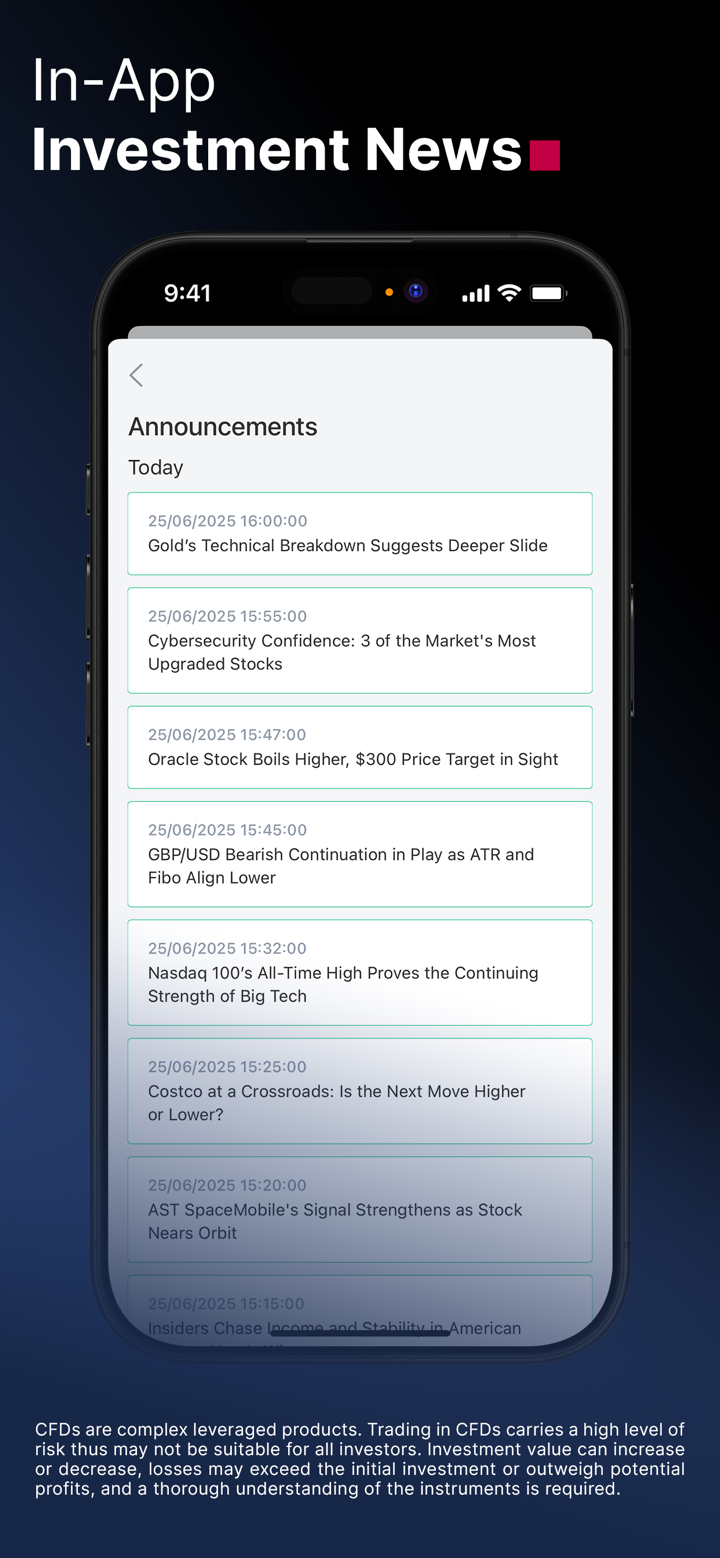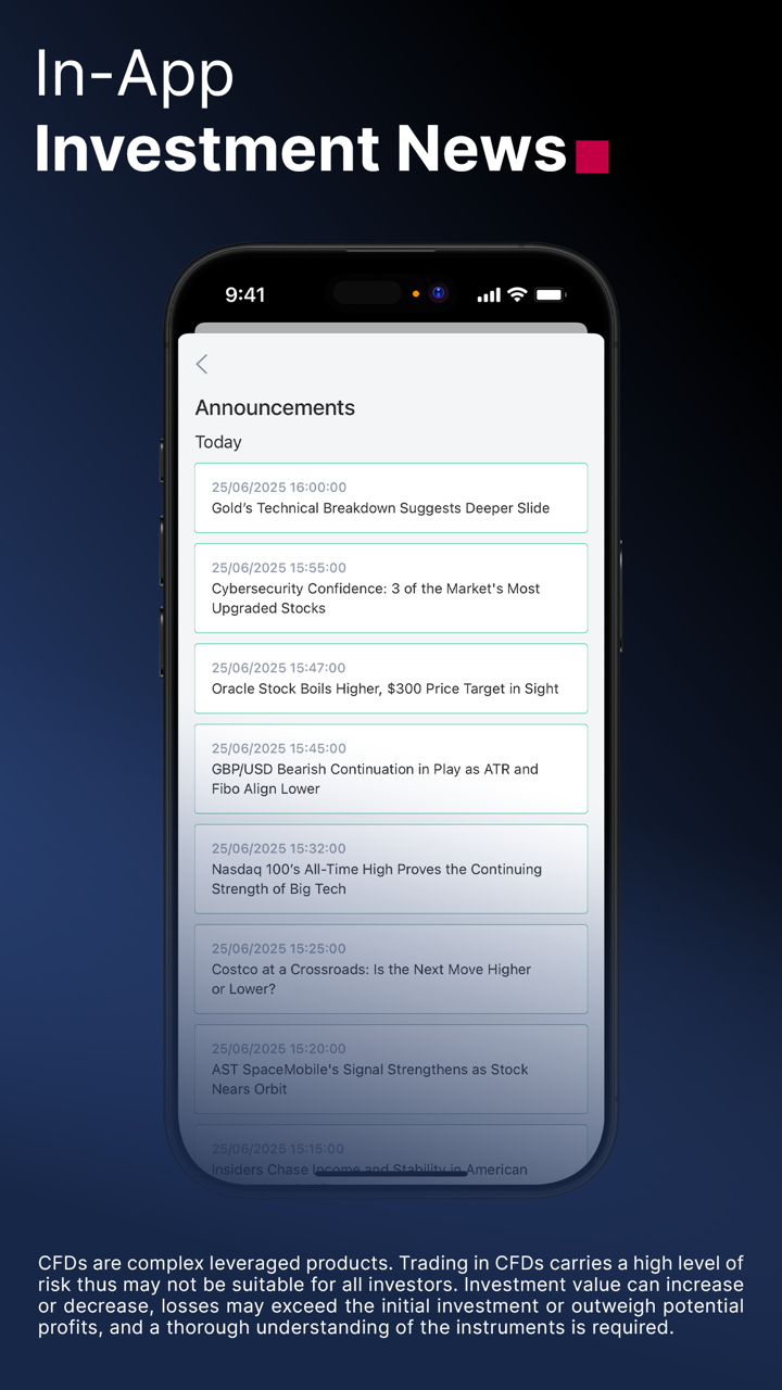 - การแจ้งเตือนแบบเรียลไทม์ติดตามข่าวสารตลาดและรับการแจ้งเตือนได้ทันทีบนอุปกรณ์ของคุณ