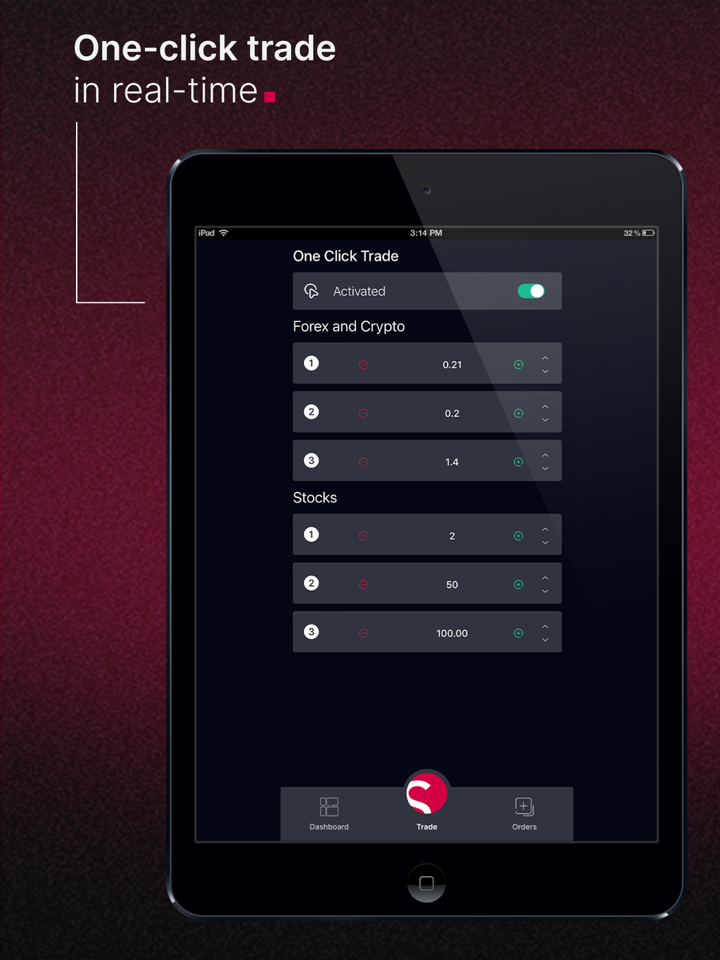 - เทรดด้วยคลิกเดียวดำเนินการซื้อขายด้วยการแตะเพียงครั้งเดียวเพื่อเข้าสู่ตลาดอย่างรวดเร็ว