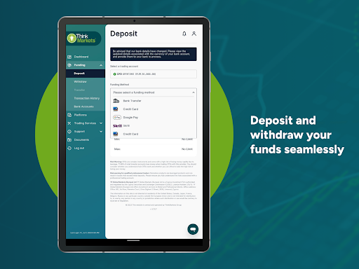 - ความพร้อมใช้งานของไฟล์ APK: แอป thinkmarkets APK สามารถดาวน์โหลดได้จากเว็บไซต์บุคคลที่สาม อย่างไรก็ตาม ผู้ใช้ควรใช้ความระมัดระวังและเลือกดาวน์โหลดจากแหล่งทางเป็นทางการเพื่อหลีกเลี่ยงความเสี่ยงความปลอดภัย
