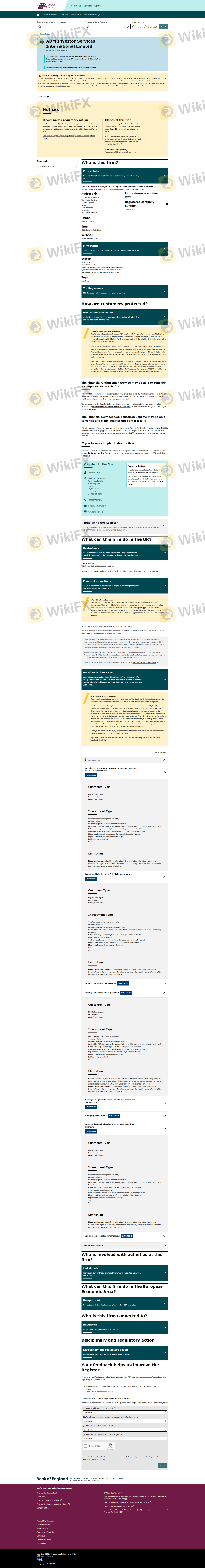 เกี่ยวกับความถูกต้องตามกฎหมายของโบรกเกอร์ฟอเร็กซ์ ADM ทางบริษัทได้มีการจัดเตรียม สหราชอาณาจักร FCA, ฮ่องกง SFC และ (ยังมีการสำรวจภาคสนามเกี่ยวกับความปลอดภัย)
