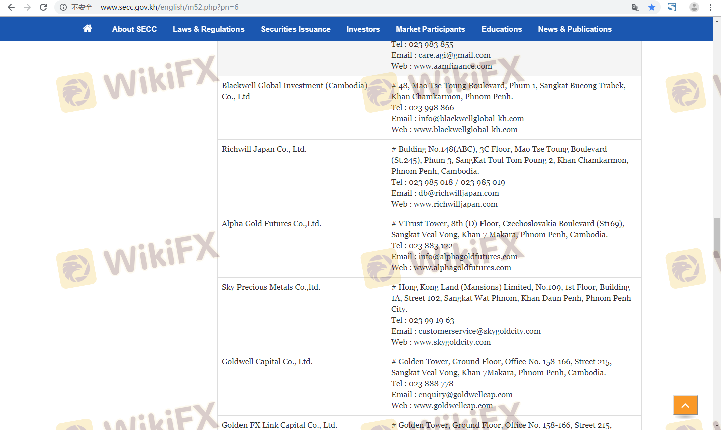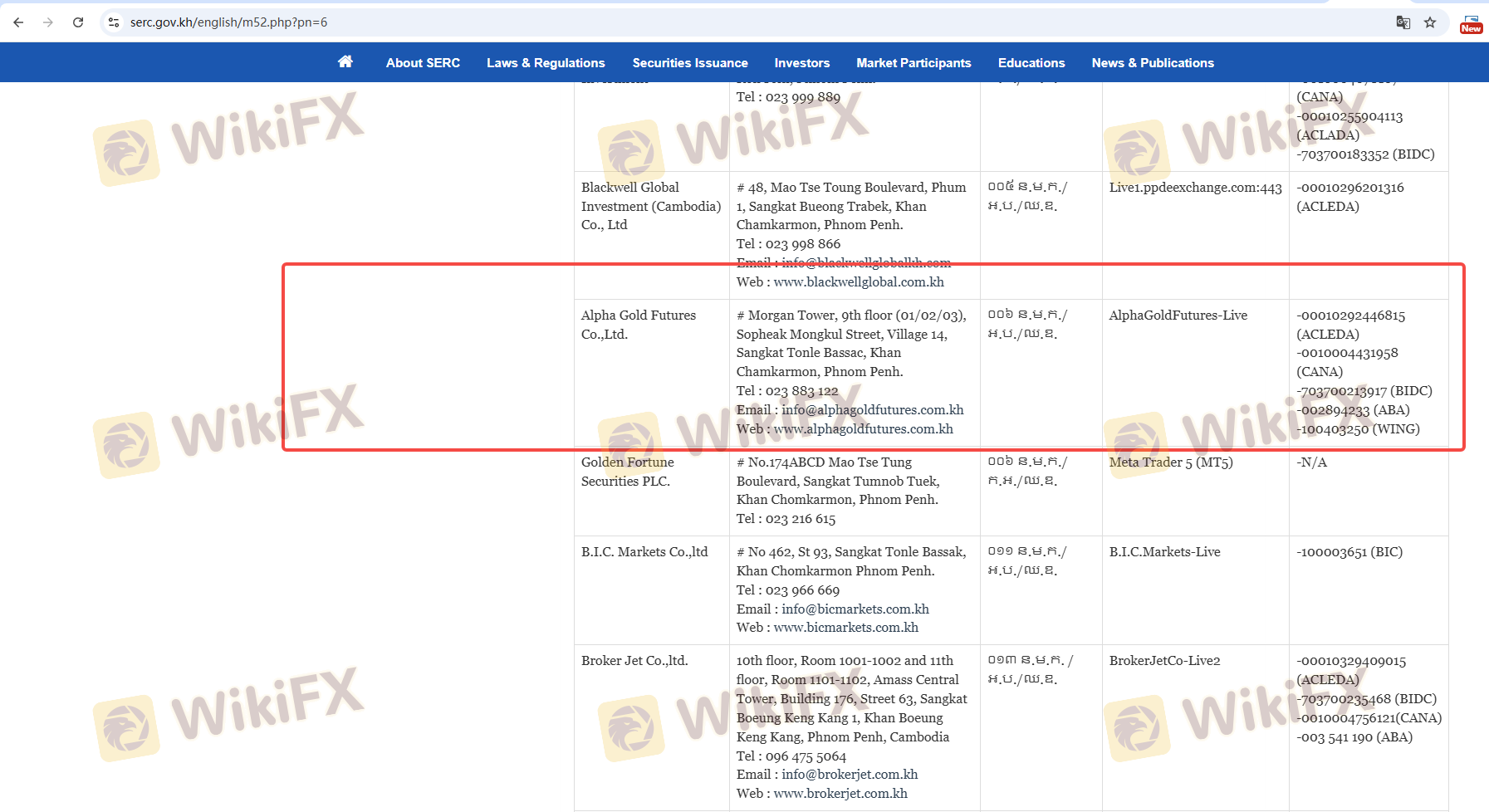 เกี่ยวกับความถูกต้องตามกฎหมายของโบรกเกอร์ฟอเร็กซ์ ALPHA GOLD FUTURES ทางบริษัทได้มีการจัดเตรียม ประเทศกัมพูชา SERC และ (ยังมีการสำรวจภาคสนามเกี่ยวกับความปลอดภัย)