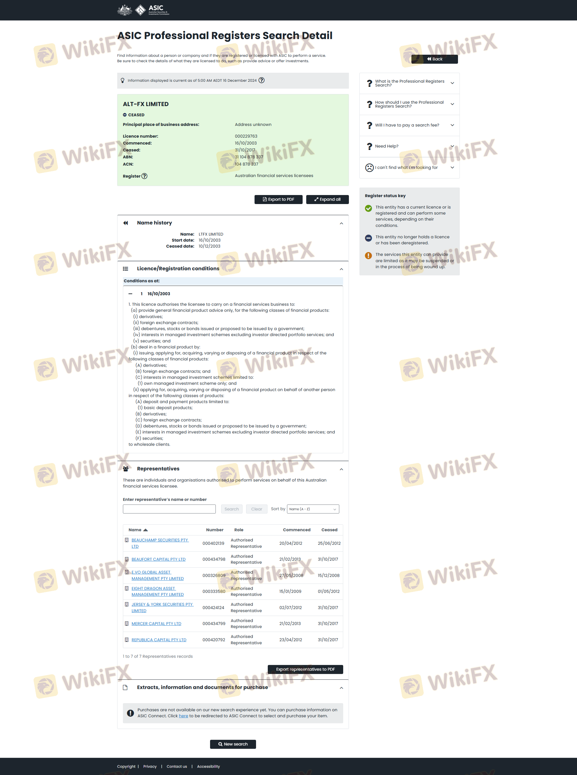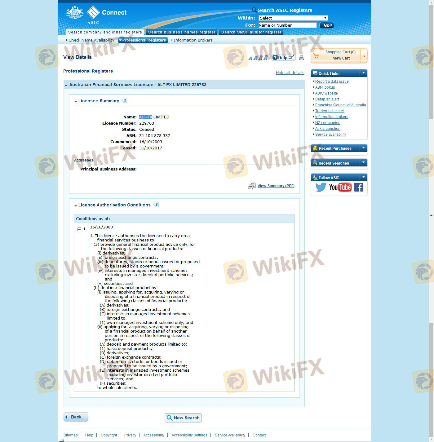 เกี่ยวกับความถูกต้องตามกฎหมายของโบรกเกอร์ฟอเร็กซ์ ALTFX ทางบริษัทได้มีการจัดเตรียม ออสเตรเลีย ASIC และ