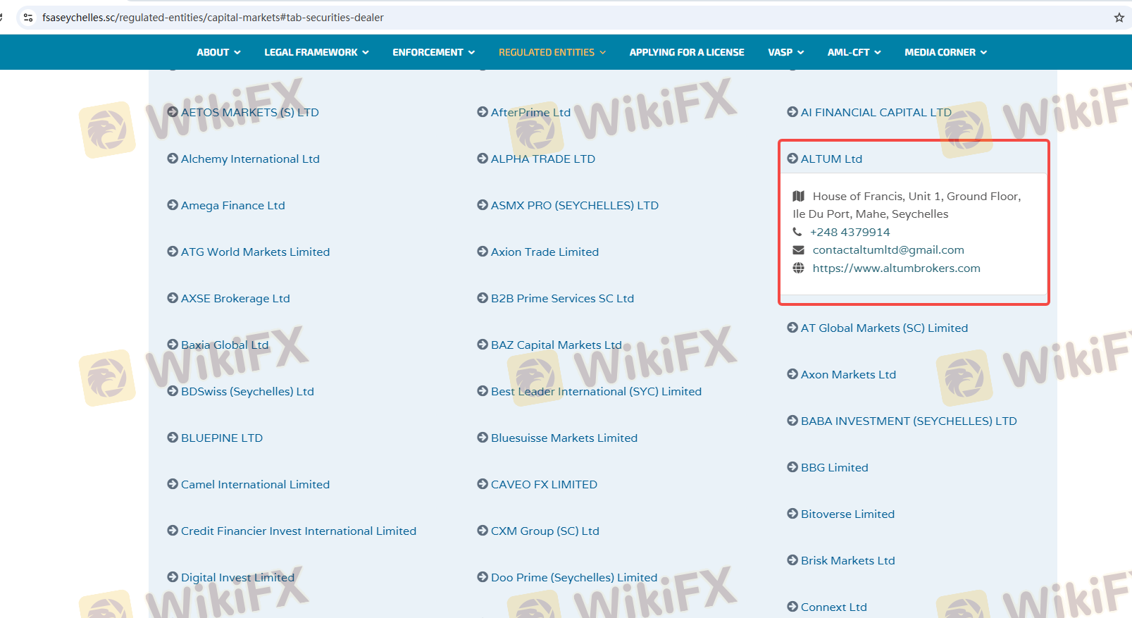 เกี่ยวกับความถูกต้องตามกฎหมายของโบรกเกอร์ฟอเร็กซ์ Altum ทางบริษัทได้มีการจัดเตรียม เซเชลส์ FSA และ