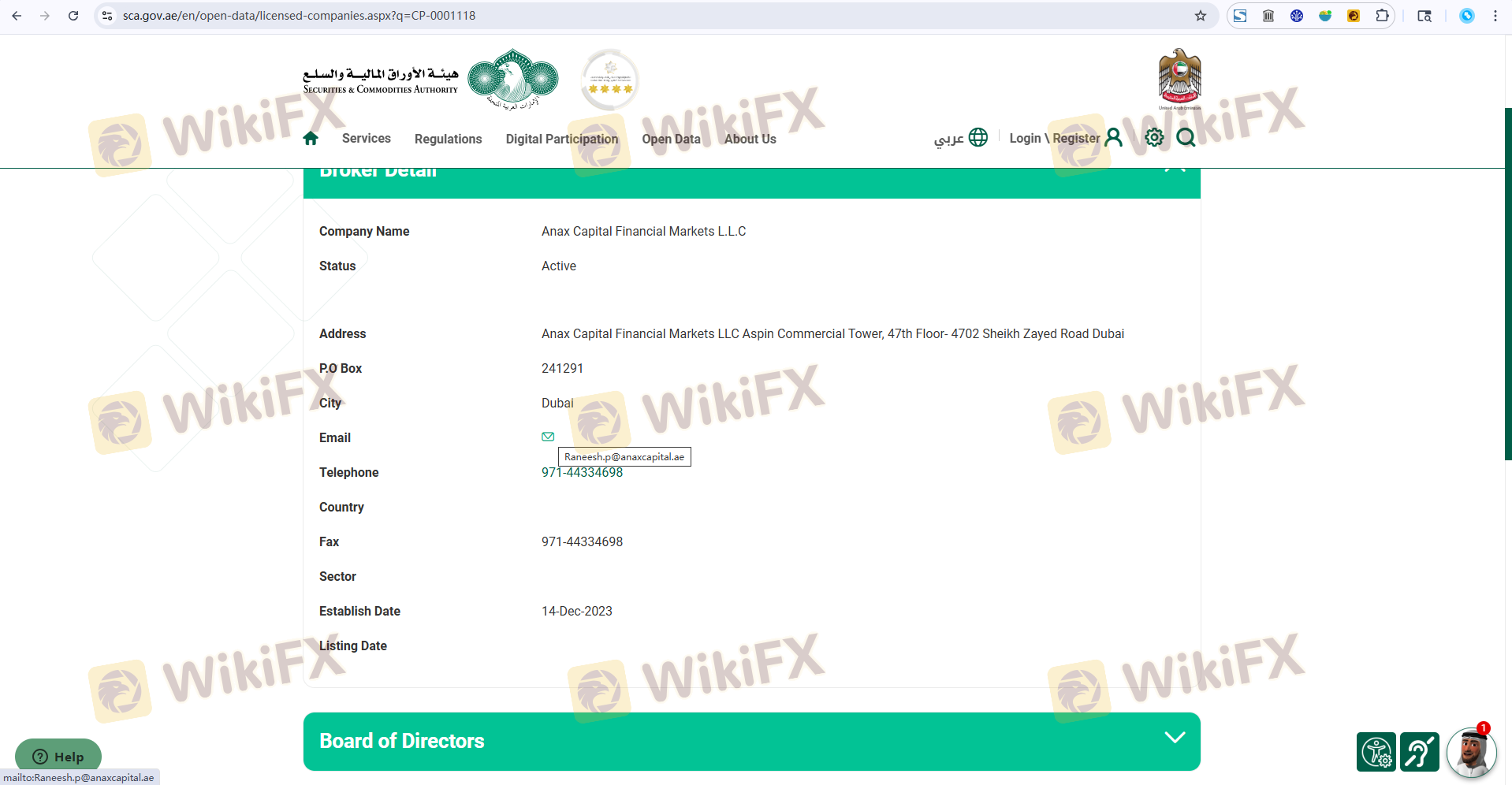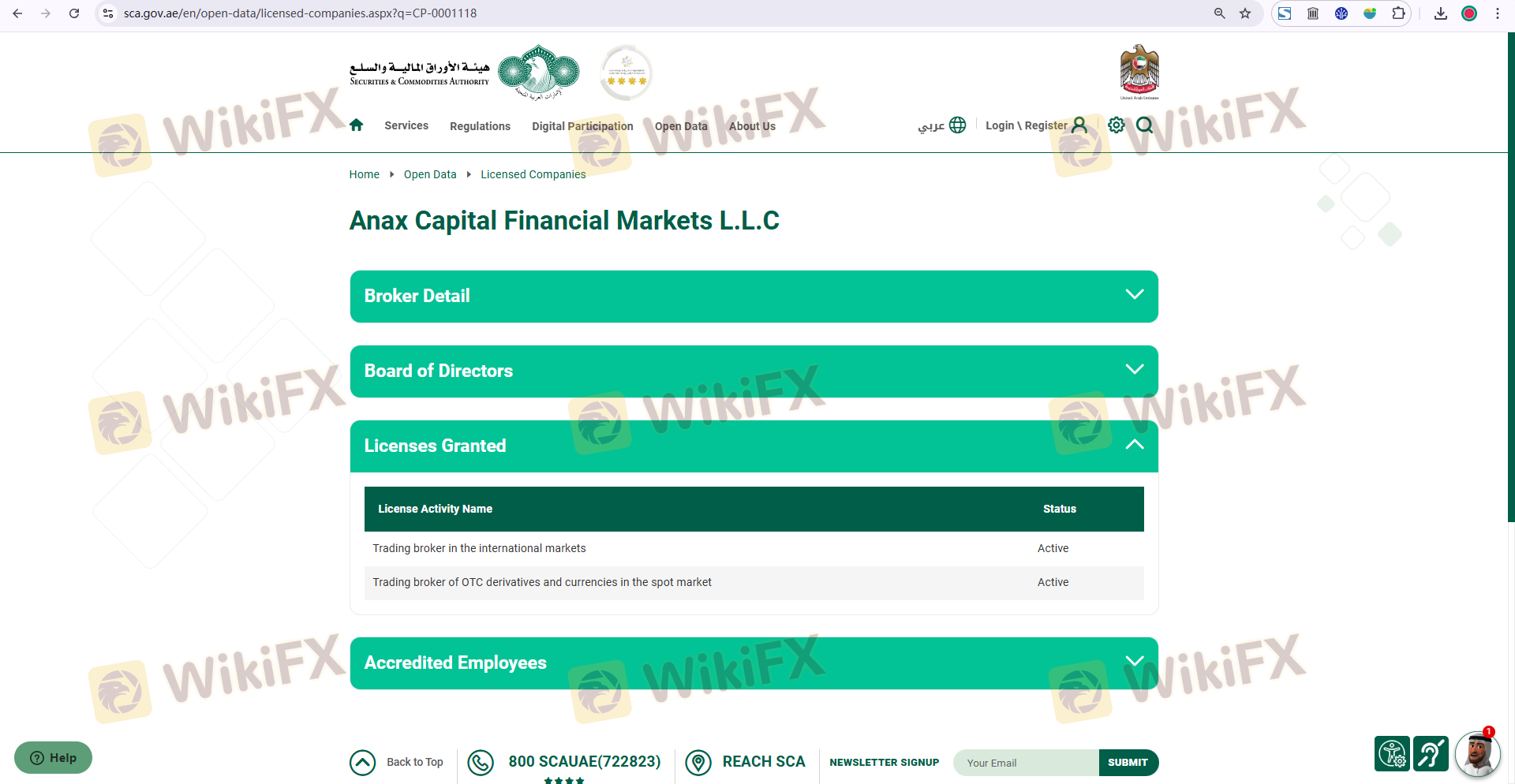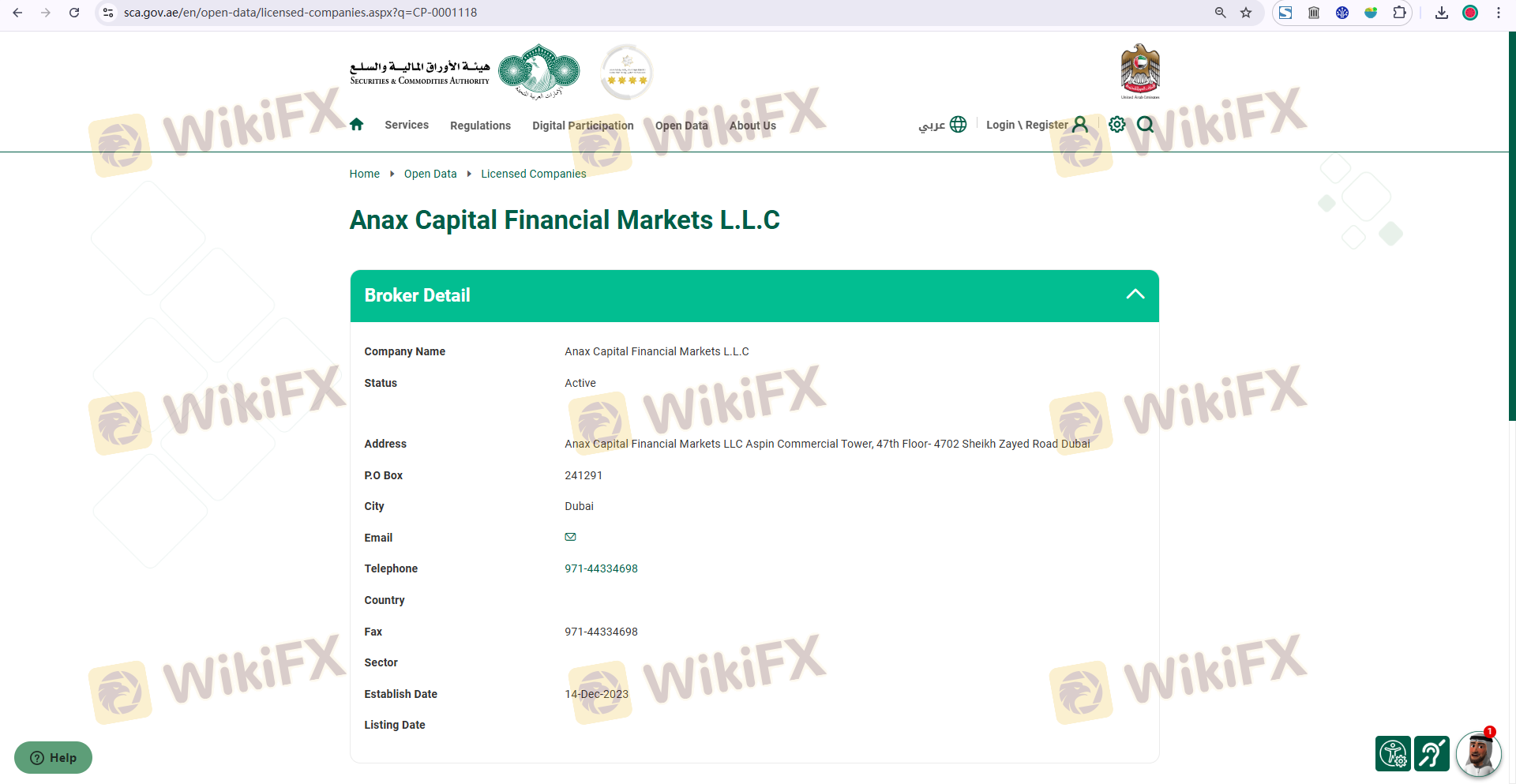 เกี่ยวกับความถูกต้องตามกฎหมายของโบรกเกอร์ฟอเร็กซ์ ANAX Capital ทางบริษัทได้มีการจัดเตรียม สหรัฐอาหรับเอมิเรตส์ CMA และ