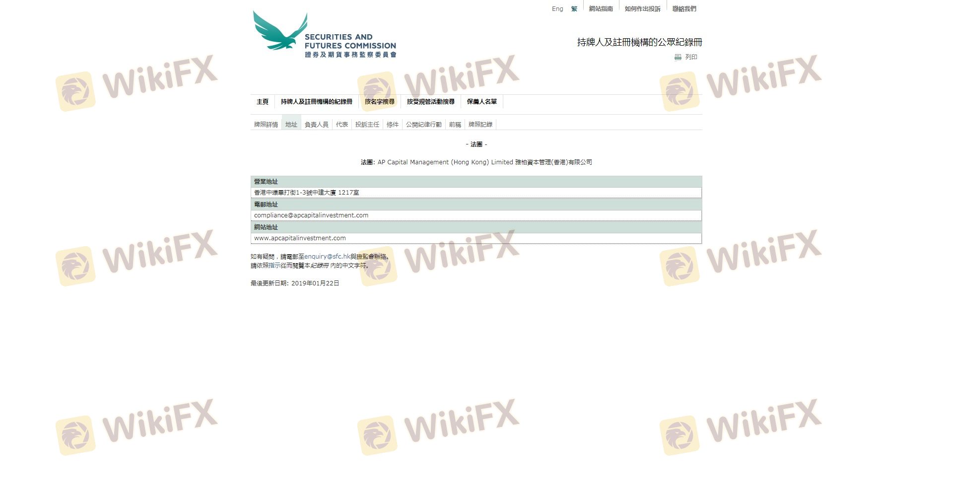 เกี่ยวกับความถูกต้องตามกฎหมายของโบรกเกอร์ฟอเร็กซ์ AP CAPITAL ทางบริษัทได้มีการจัดเตรียม ฮ่องกง SFC และ (ยังมีการสำรวจภาคสนามเกี่ยวกับความปลอดภัย)