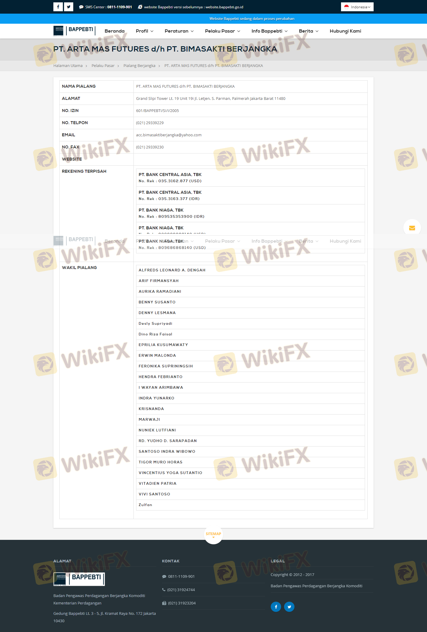 เกี่ยวกับความถูกต้องตามกฎหมายของโบรกเกอร์ฟอเร็กซ์ ARTAMAS FUTURES ทางบริษัทได้มีการจัดเตรียม อินโดนีเซีย BAPPEBTI และ (ยังมีการสำรวจภาคสนามเกี่ยวกับความปลอดภัย)