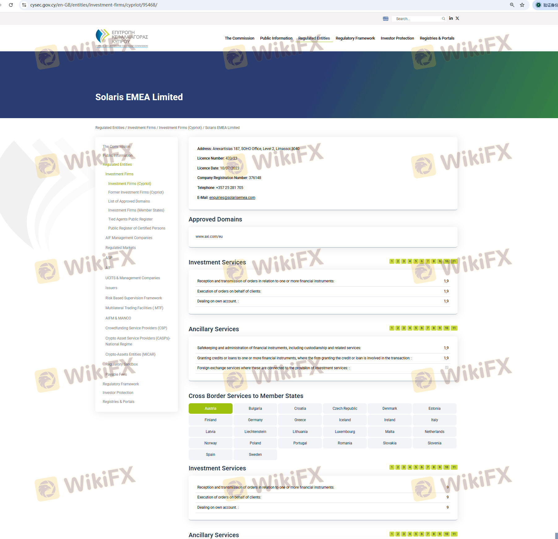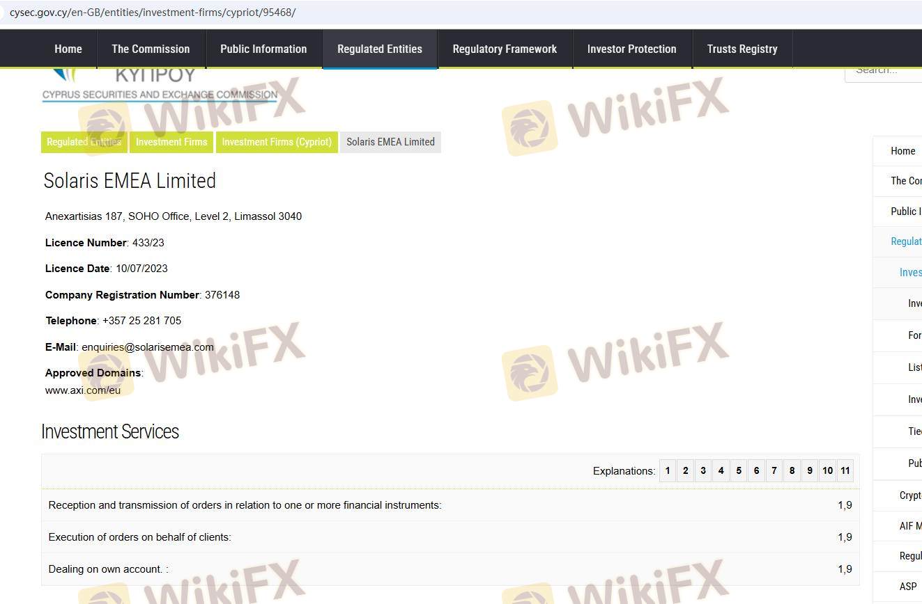 เกี่ยวกับความถูกต้องตามกฎหมายของโบรกเกอร์ฟอเร็กซ์ Axi ทางบริษัทได้มีการจัดเตรียม ออสเตรเลีย ASIC, สหราชอาณาจักร FCA, นิวซีแลนด์ FMA, ประเทศไซปรัส CYSEC และ (ยังมีการสำรวจภาคสนามเกี่ยวกับความปลอดภัย)