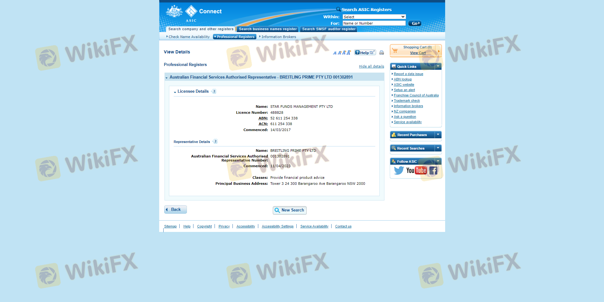 เกี่ยวกับความถูกต้องตามกฎหมายของโบรกเกอร์ฟอเร็กซ์ Breitling Prime ทางบริษัทได้มีการจัดเตรียม ออสเตรเลีย ASIC และ (ยังมีการสำรวจภาคสนามเกี่ยวกับความปลอดภัย)