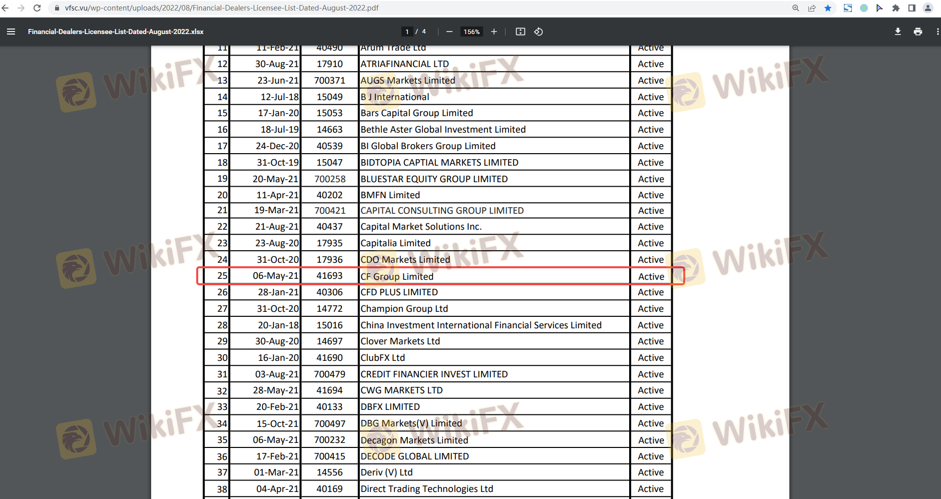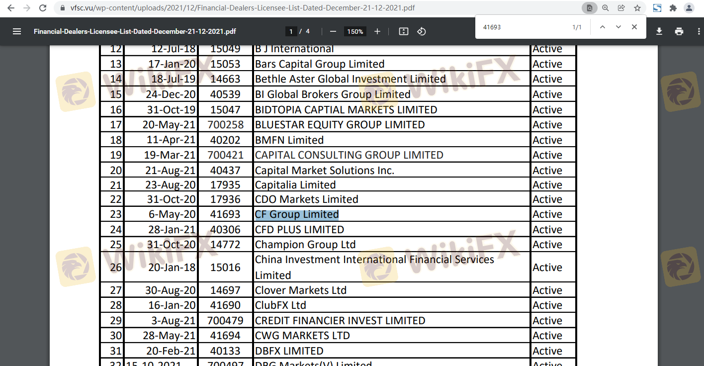 เกี่ยวกับความถูกต้องตามกฎหมายของโบรกเกอร์ฟอเร็กซ์ CF Group ทางบริษัทได้มีการจัดเตรียม วานูอาตู VFSC และ