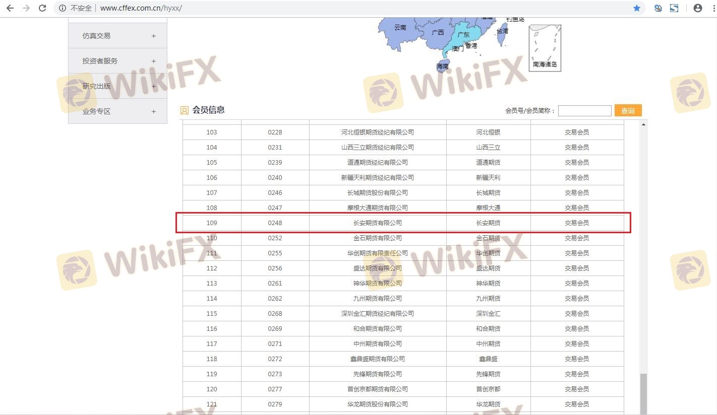 เกี่ยวกับความถูกต้องตามกฎหมายของโบรกเกอร์ฟอเร็กซ์ CHANG-AN FUTURES ทางบริษัทได้มีการจัดเตรียม ประเทศจีน CFFEX และ